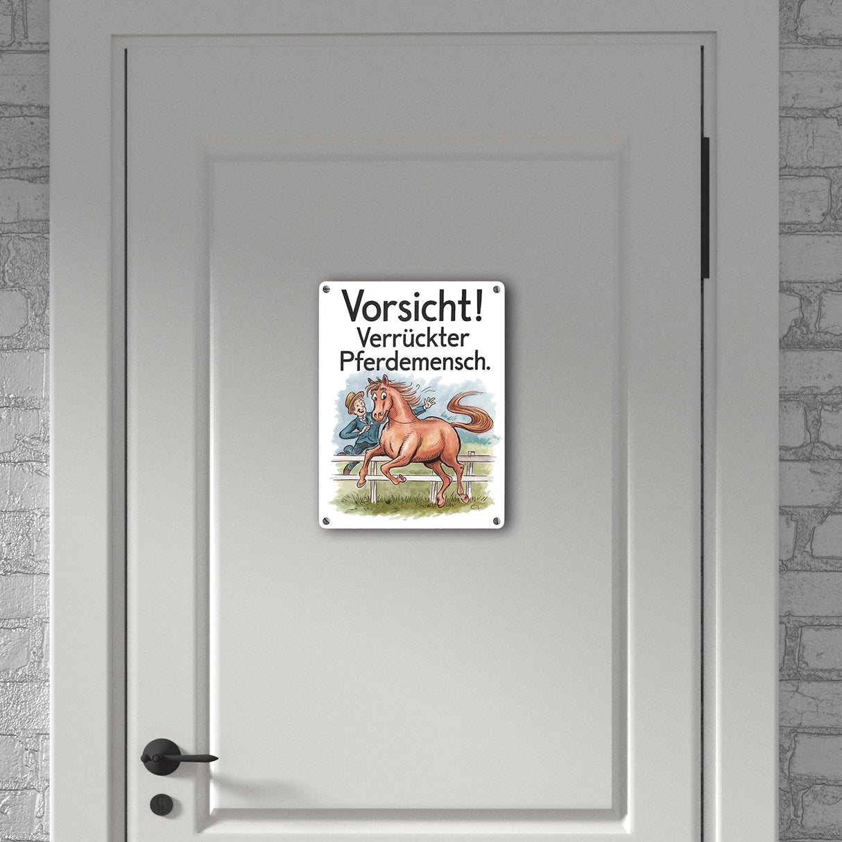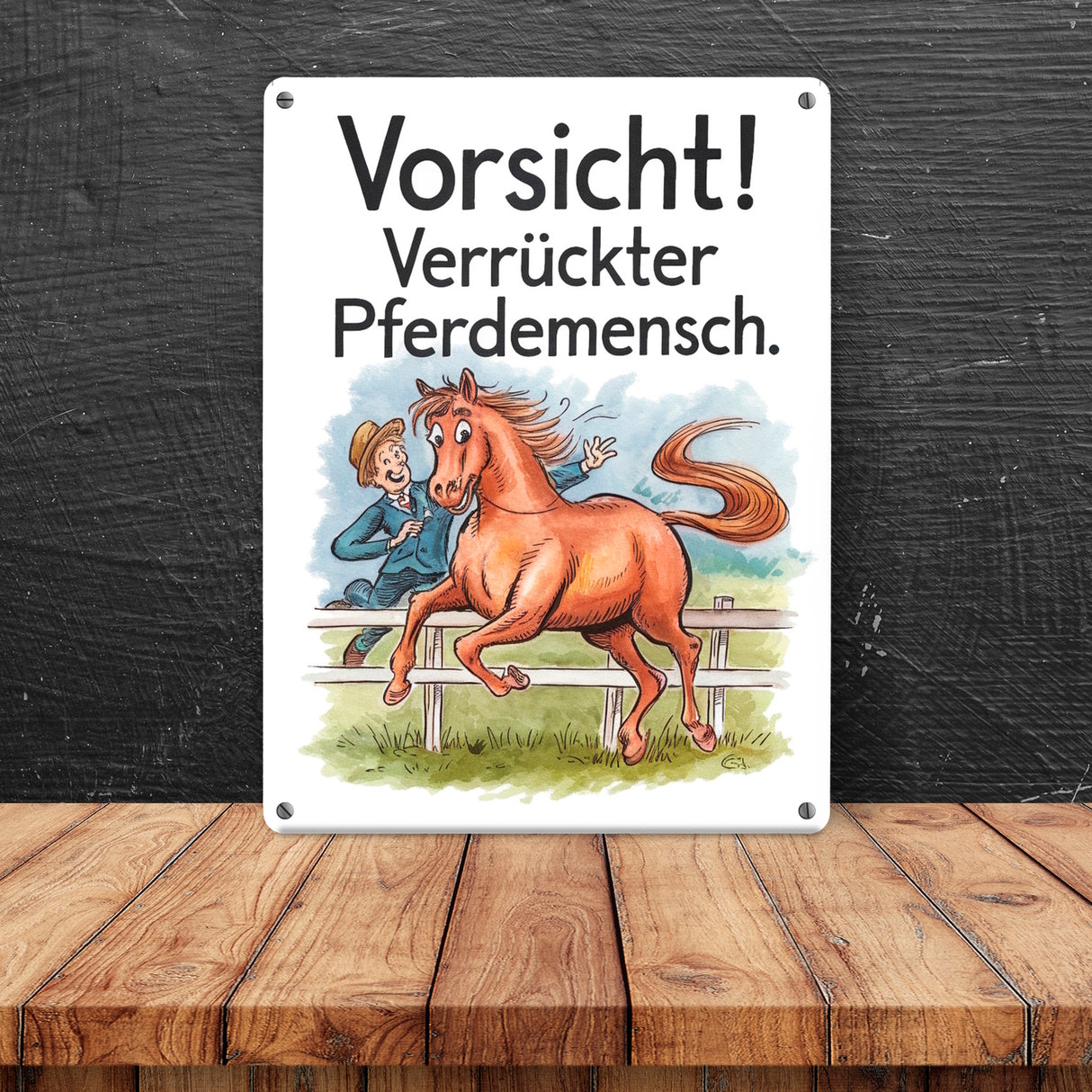 Vorsicht! - Verrückter Pferdemensch Metallschild in 15x20 cm - 15x20 cm ist auf Lager und wird versandt, sobald es wieder verfügbar ist