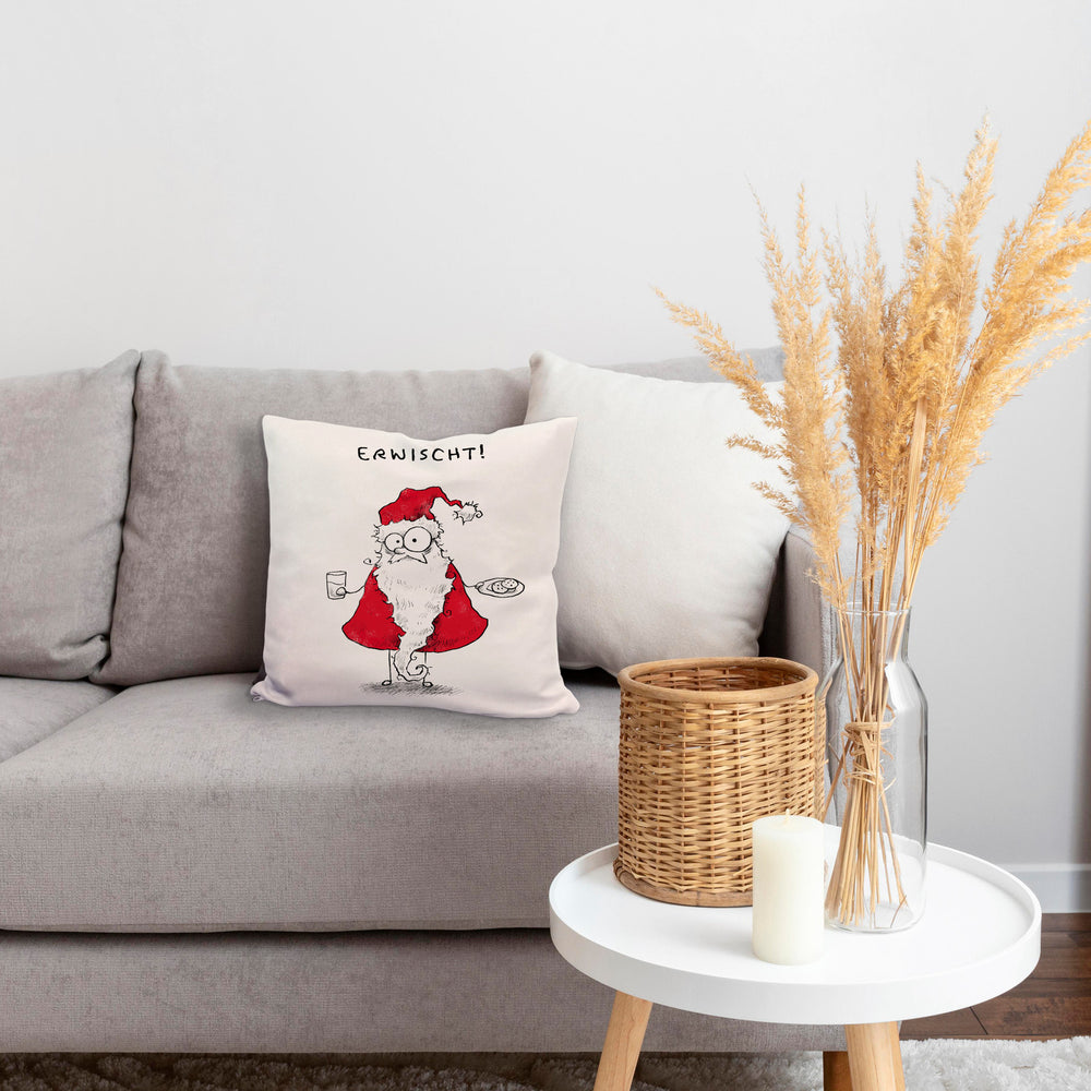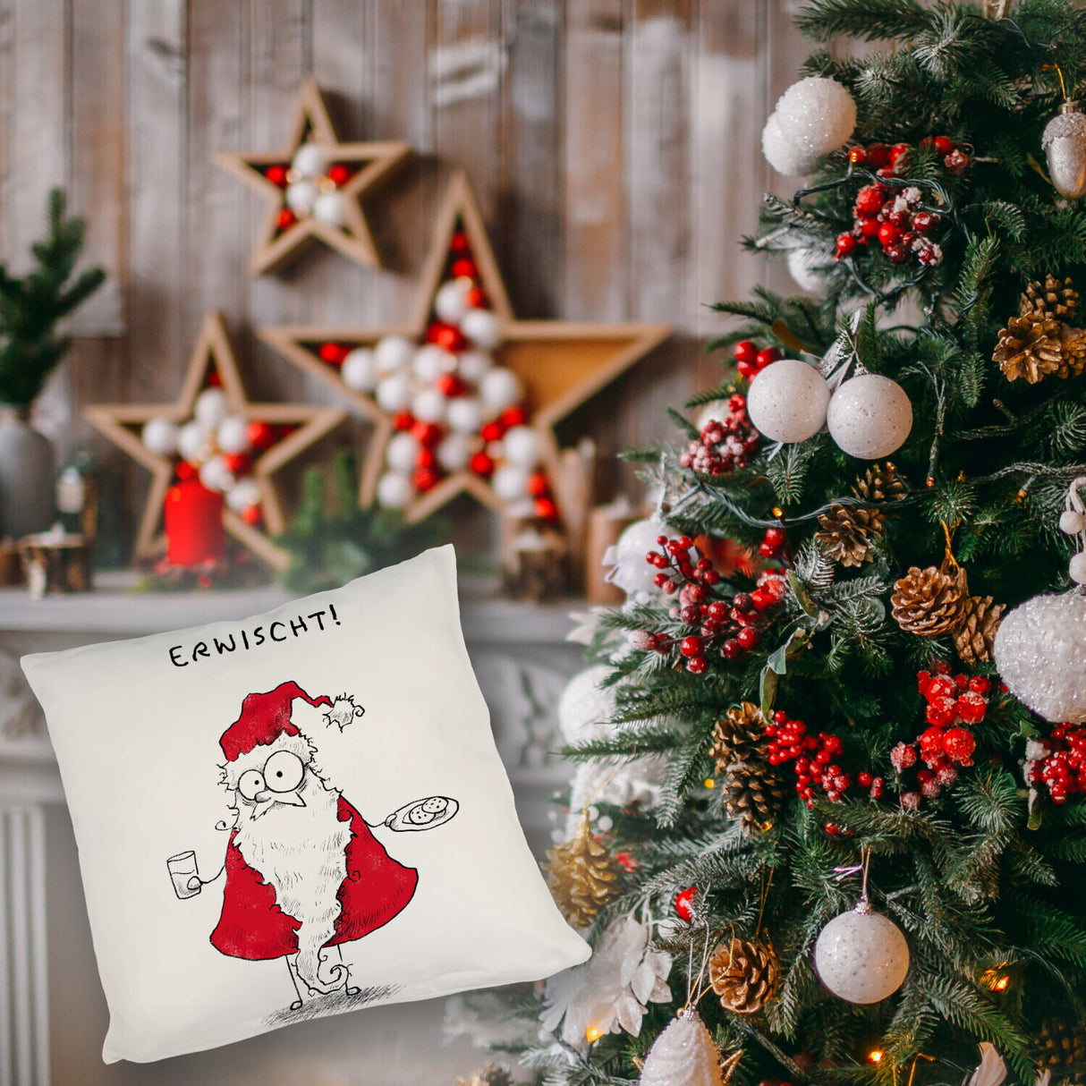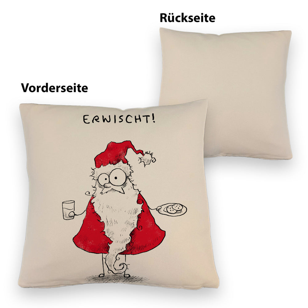 - 1x Weihnachtsmann am Naschen Kissen mit Spruch Erwischt in der gewählten Ausführung