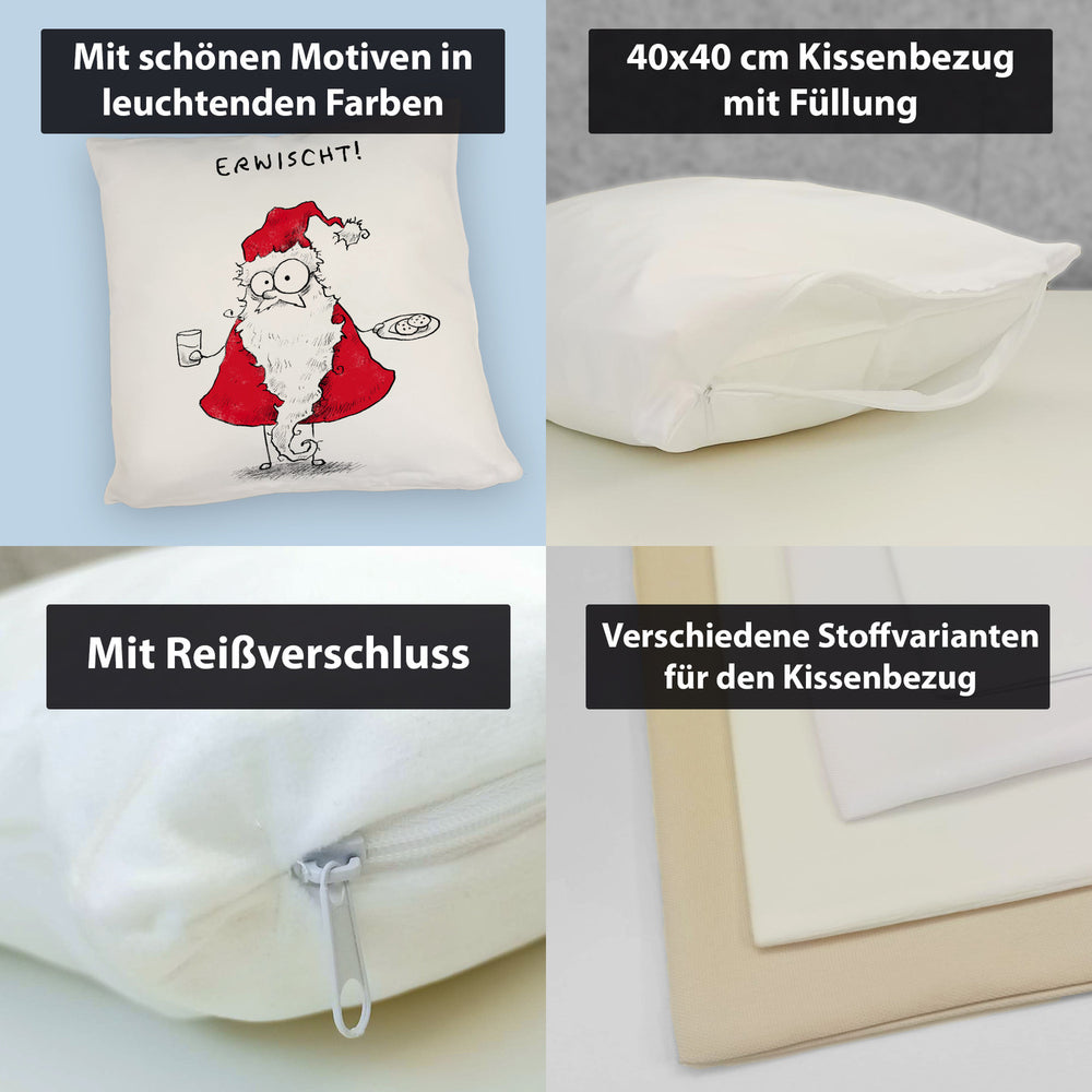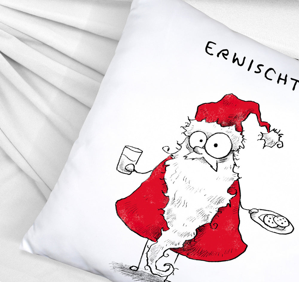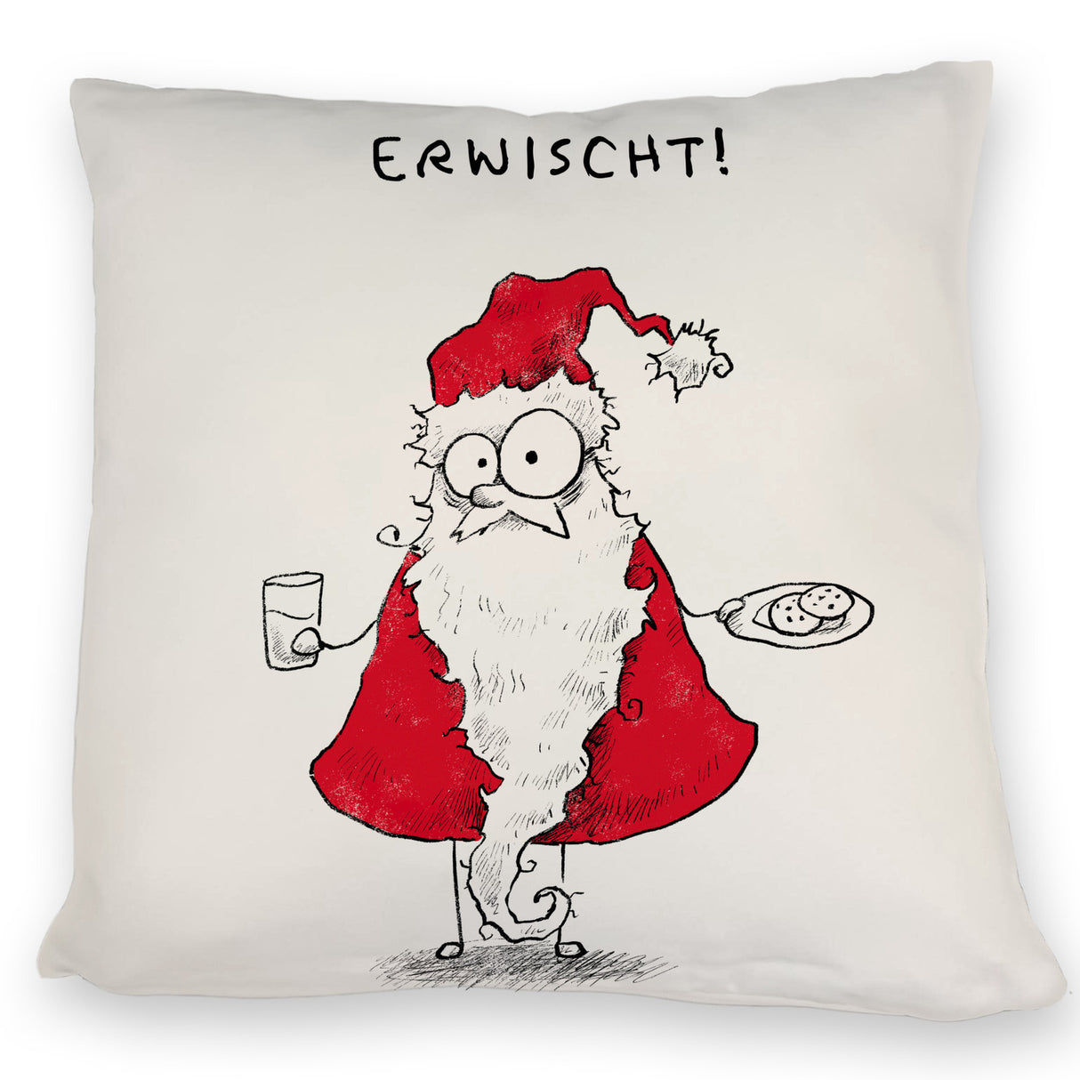 - 1x Weihnachtsmann am Naschen Kissen mit Spruch Erwischt in der gewählten Ausführung