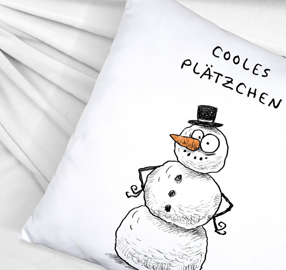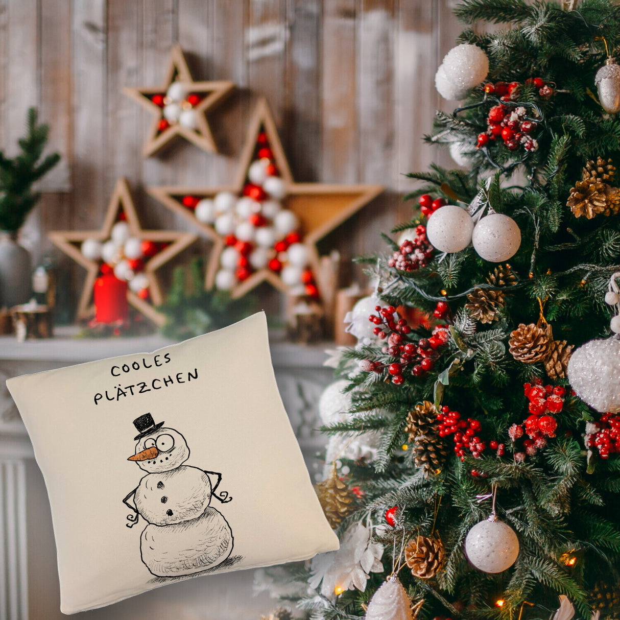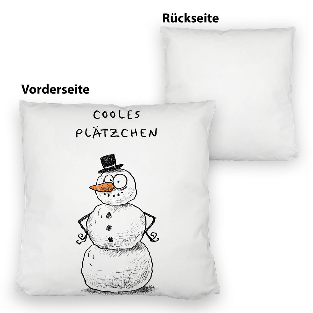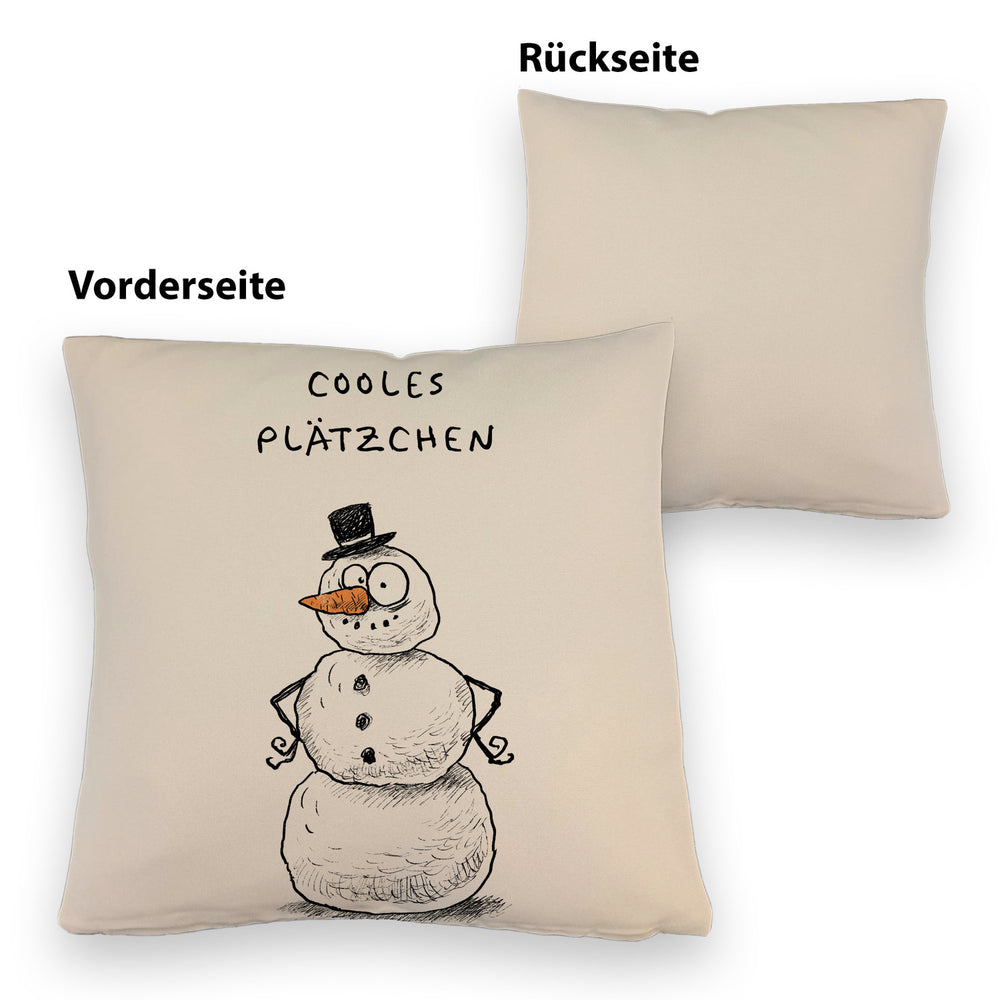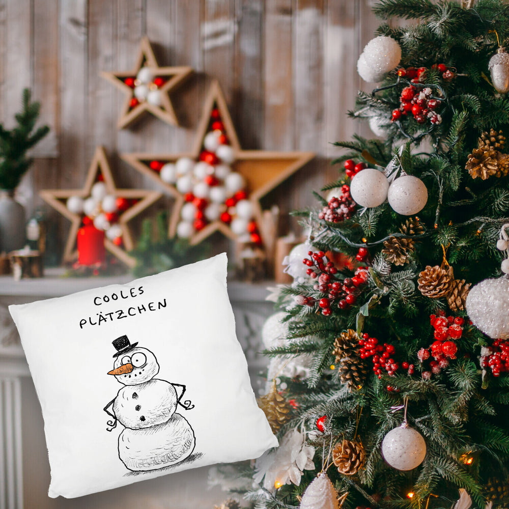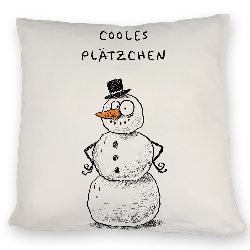 Schneemann mit Hut Kissen mit Spruch Cooles Plätzchen