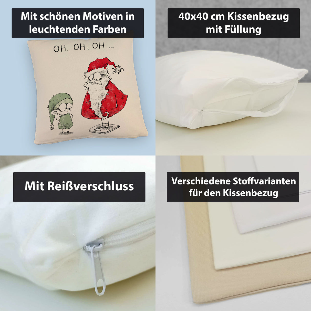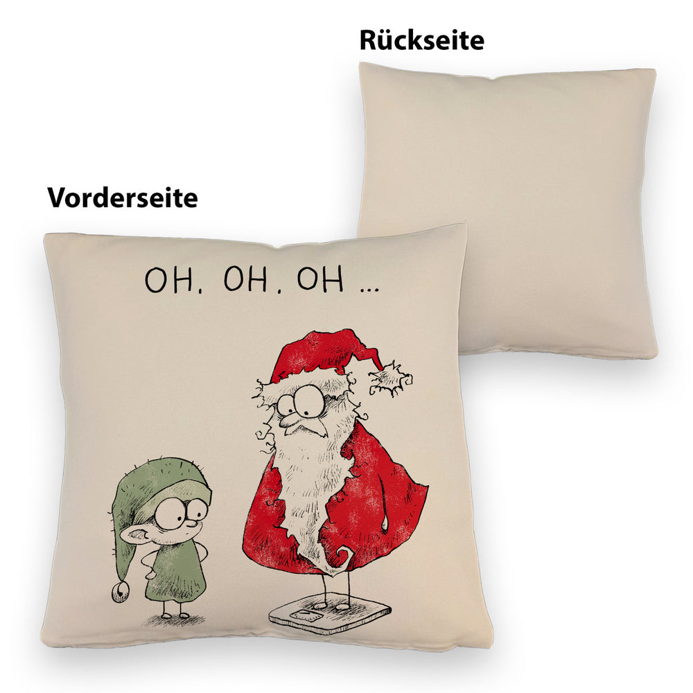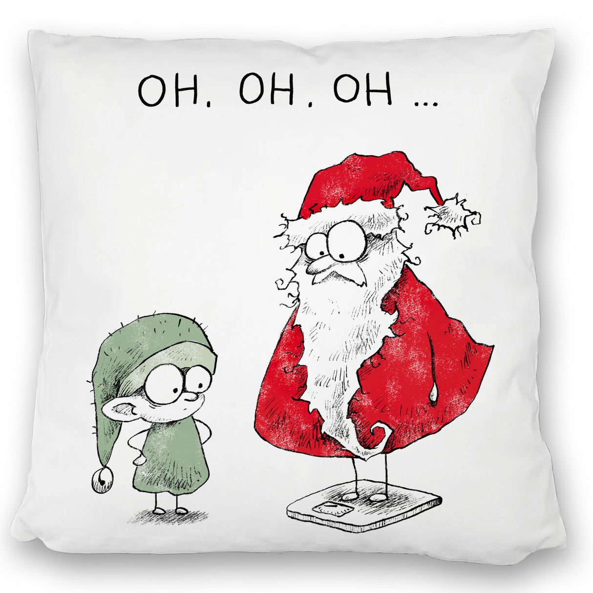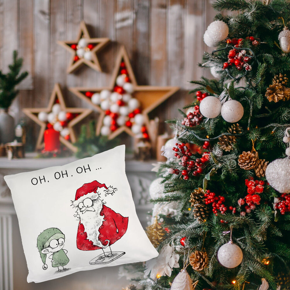 Weihnachtsmann und Elf Kissen mit Spruch OH OH OH