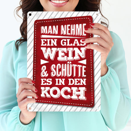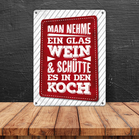 Ab €6,95Grundpreis /Nicht verfügbarAuf LagerMan nehme ein Glas Wein und schütte es in den Koch Metallschild