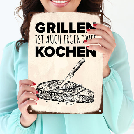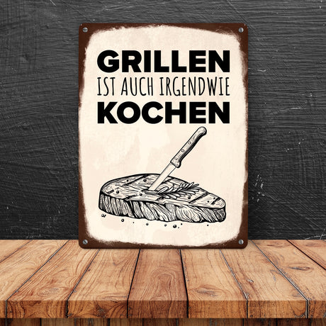€9,95Grundpreis /Nicht verfügbarGrillen ist auch irgendwie kochen Metallschild mit Steak Motiv