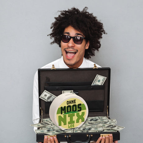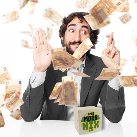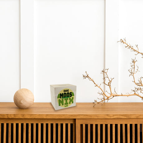 Spardose mit lustigem Motiv und Spruch: Ohne Moos nix los