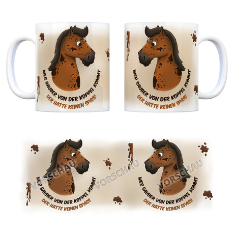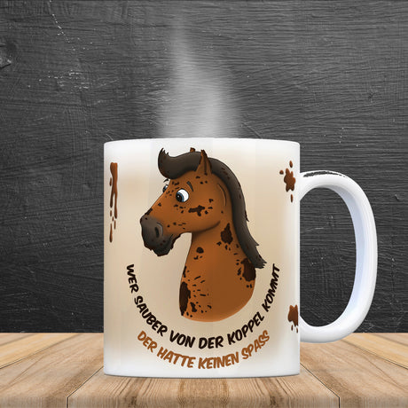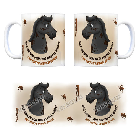 Ab €12,95Grundpreis /Nicht verfügbarAuf LagerKaffeebecher mit weißes Pferd Motiv und Spruch: Wer sauber von der Koppel kommt, ...