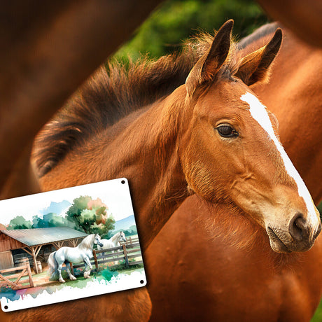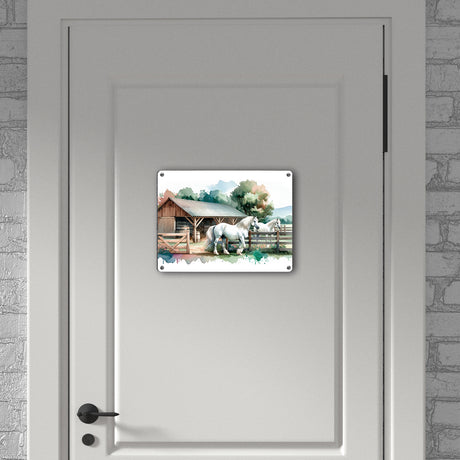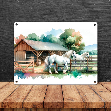 €16,95Grundpreis /Nicht verfügbar weiße Pferde auf der Koppel Metallschild in 15x20 cm