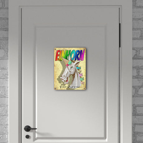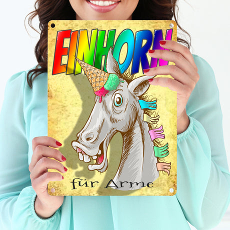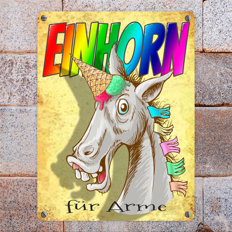 Ab €8,95Grundpreis /Nicht verfügbarAuf LagerMetallschild mit Regenbogen Einhorn Motiv und Spruch - Einhorn für Arme