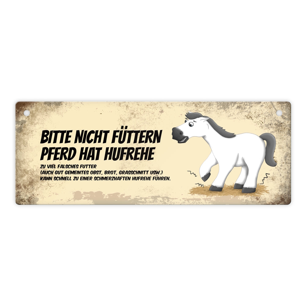 - 1x Metallschild mit weißem Pferd Motiv und Spruch: Bitte nicht füttern - Hufrehe in der gewählten Größe
