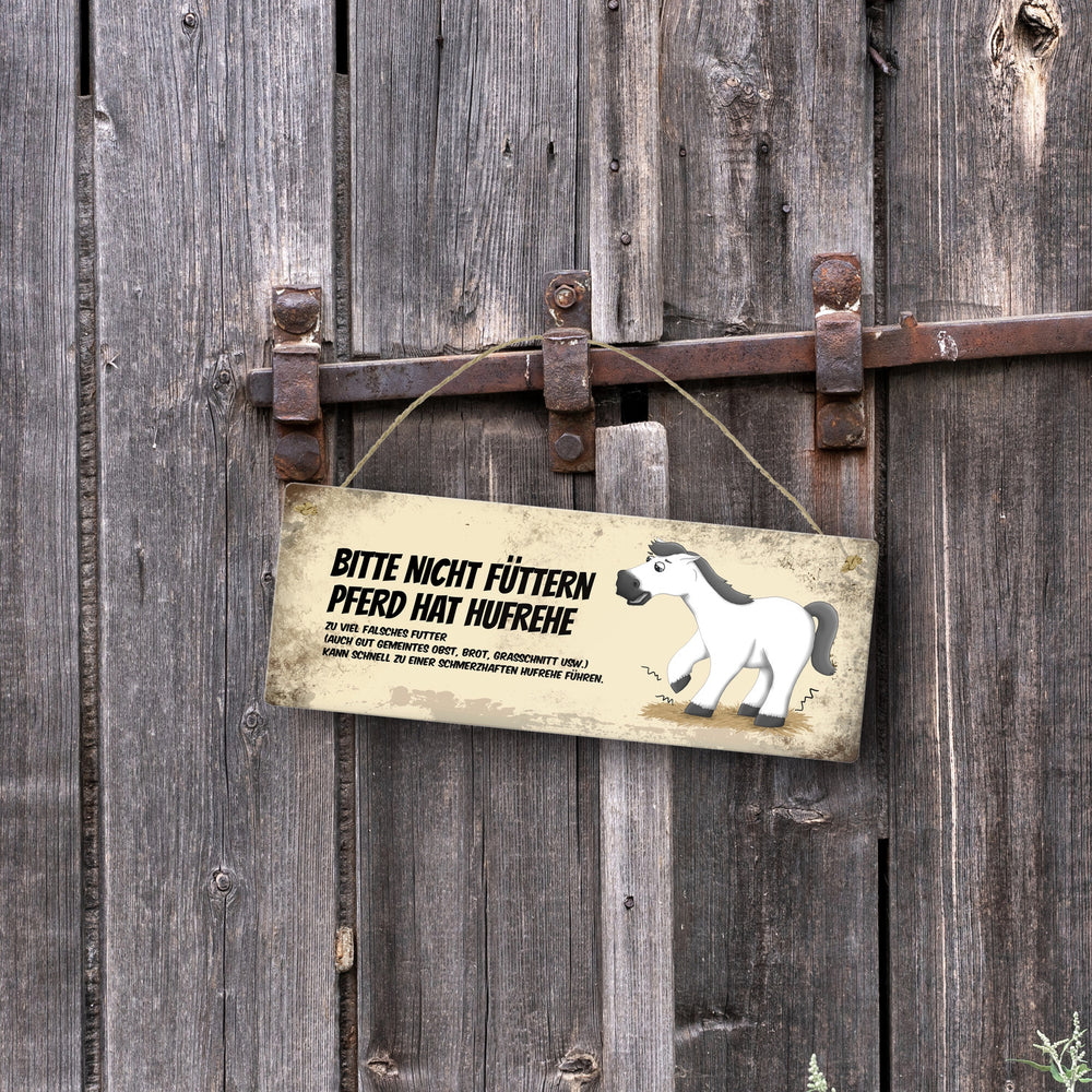 Warnschild mit niedlichem Pferd und kräftiger Aussage für alle Pferdefütterer. Hinweise: Material: Aluminium / Dicke: 0,5 mm