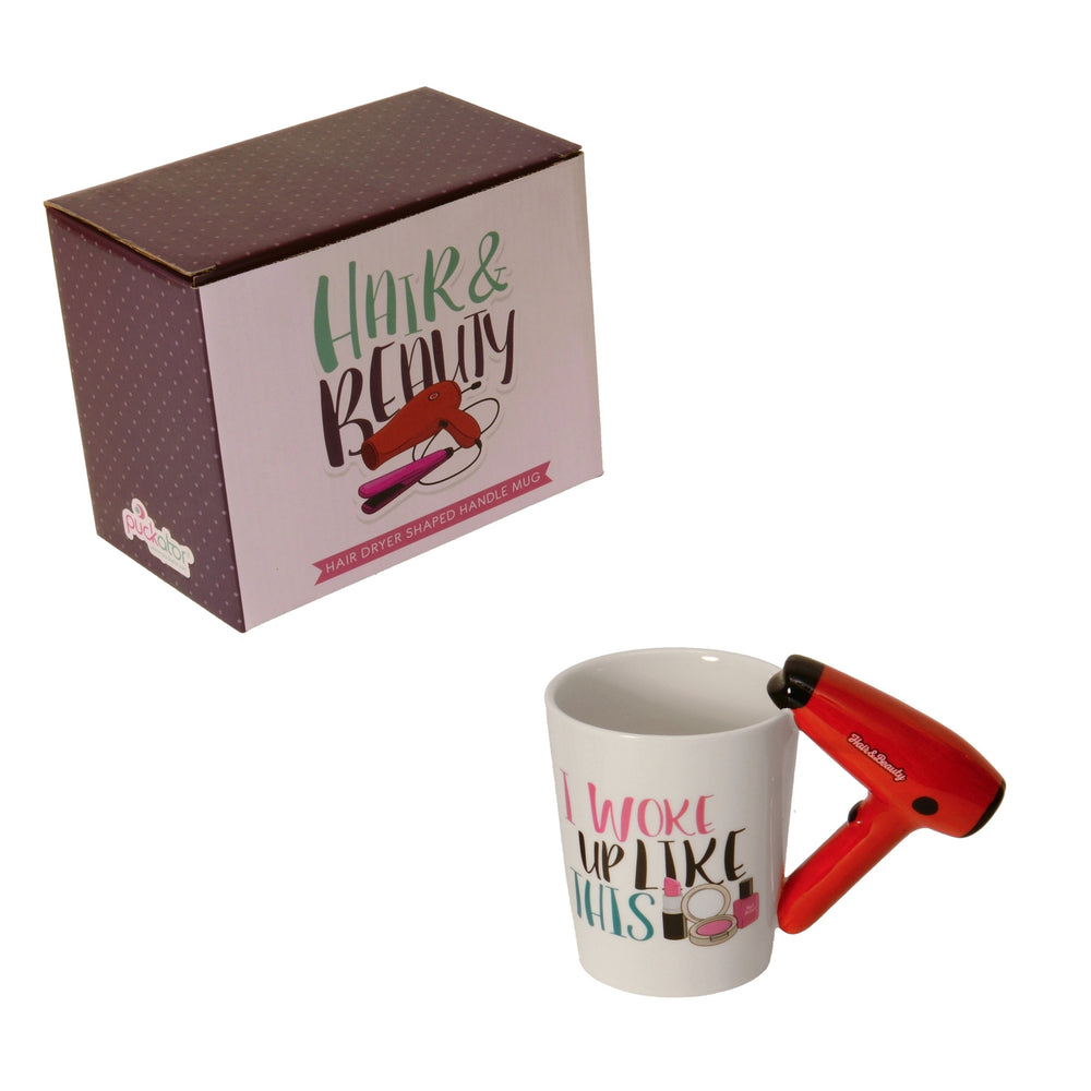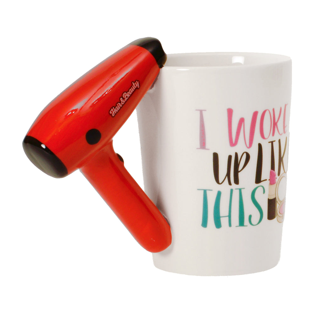 I woke up like this 3D Kaffeebecher mit Föhn als Griff