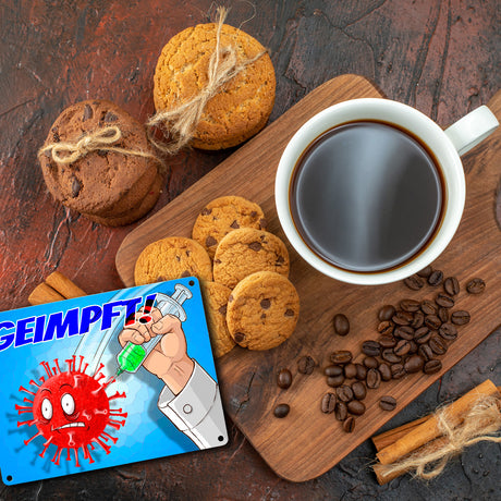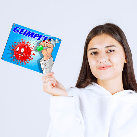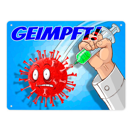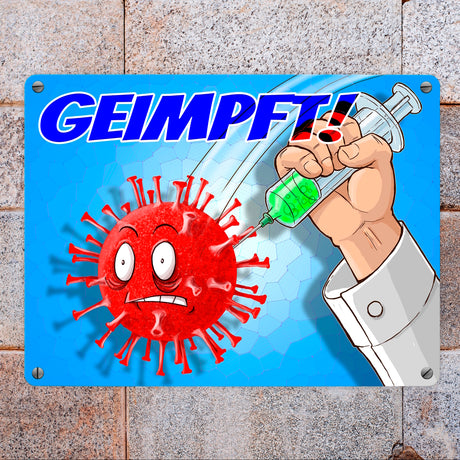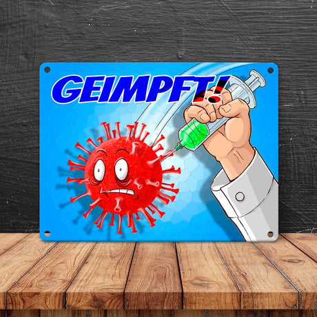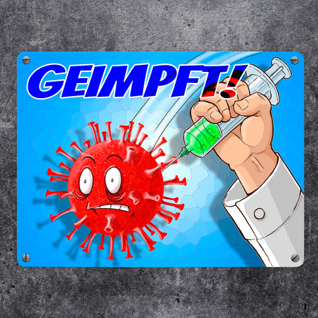 Ab €12,95Grundpreis /Nicht verfügbarAuf LagerMetallschild mit Virus und Spritzen Motiv - Geimpft! Lustiger Impfhumor