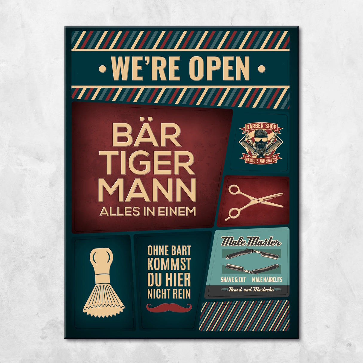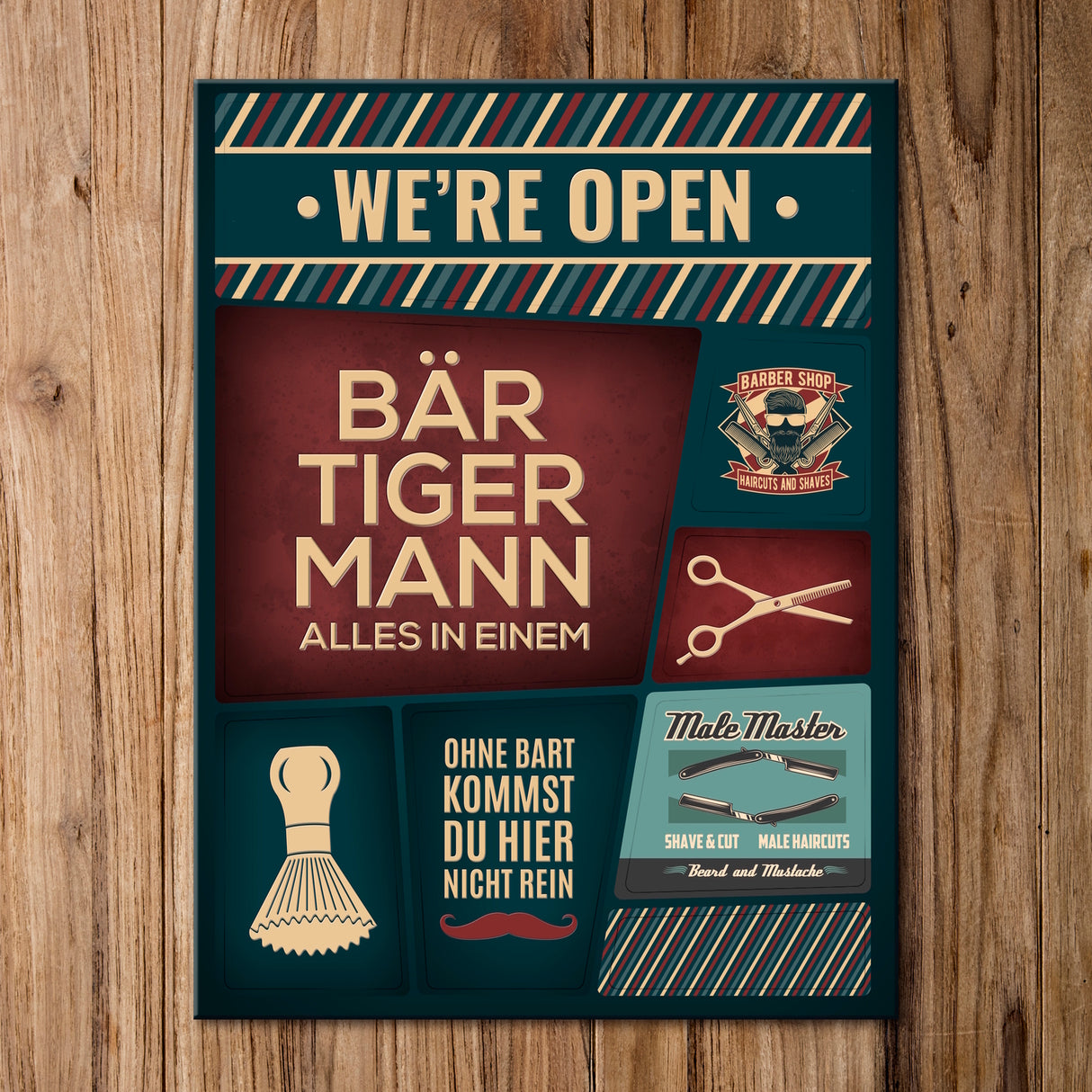 Echte Männer tragen Bärte Metallschild mit Barber-Shop Motiv