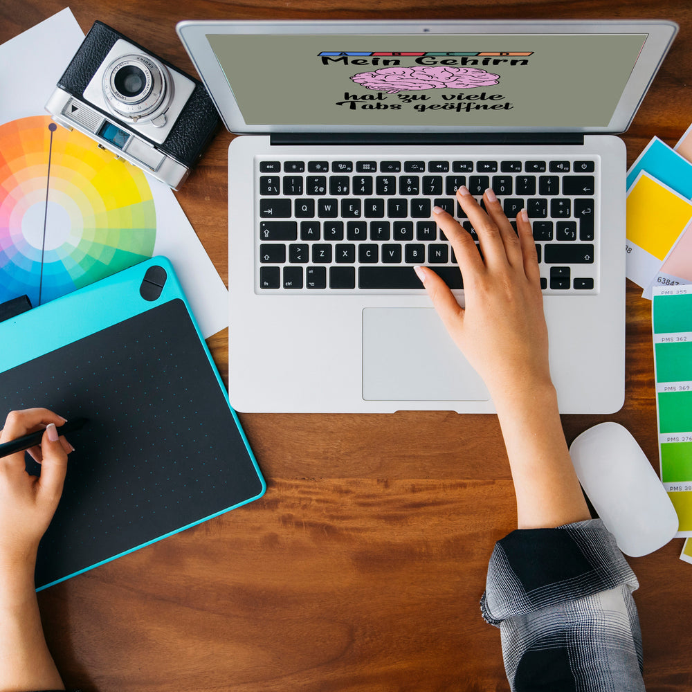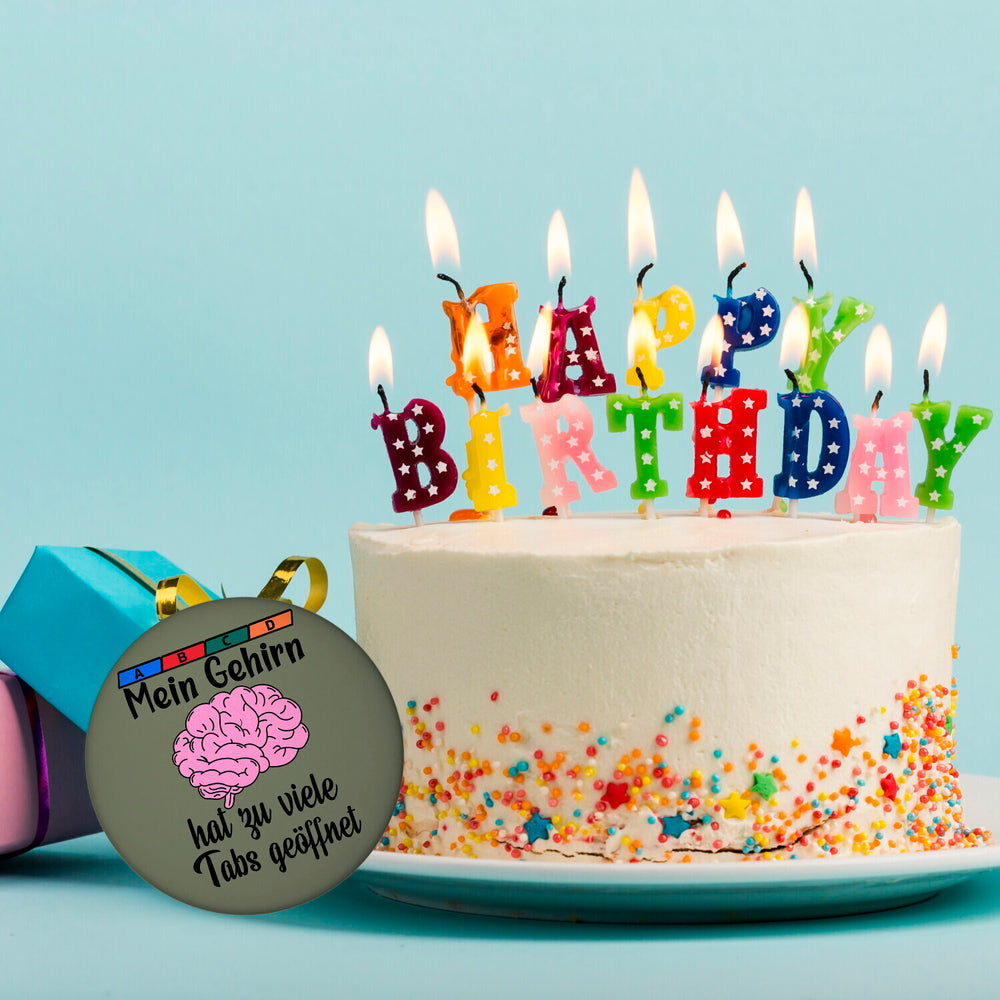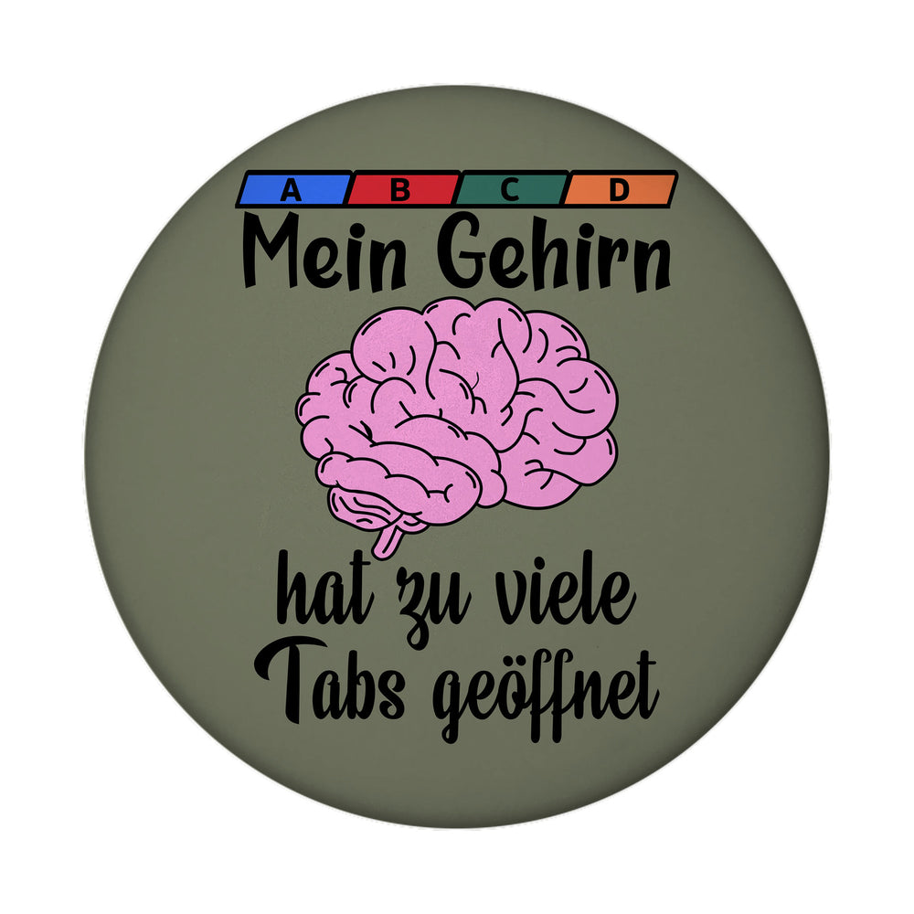 • 1x Überforderung Magnet rund mit Spruch Mein Gehirn hat zu viele Tabs geöffnet in der gewählten Ausführung