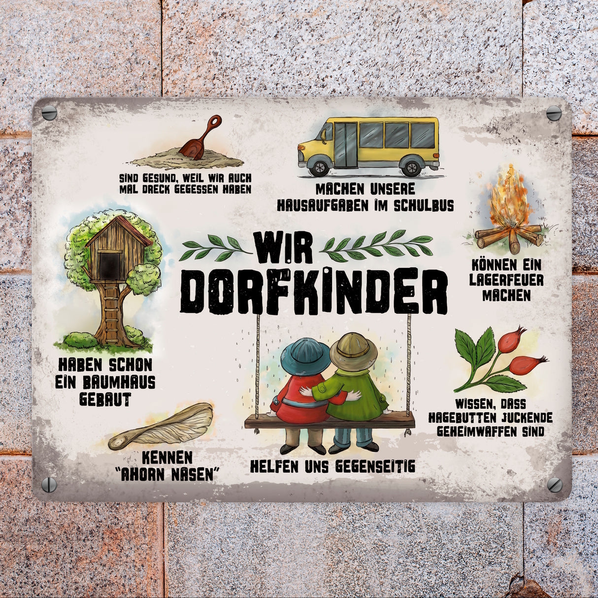 Wir Dorfkinder Metallschild mit Retro Motiven