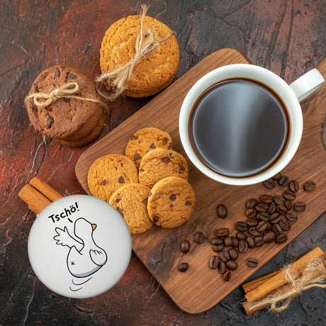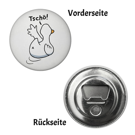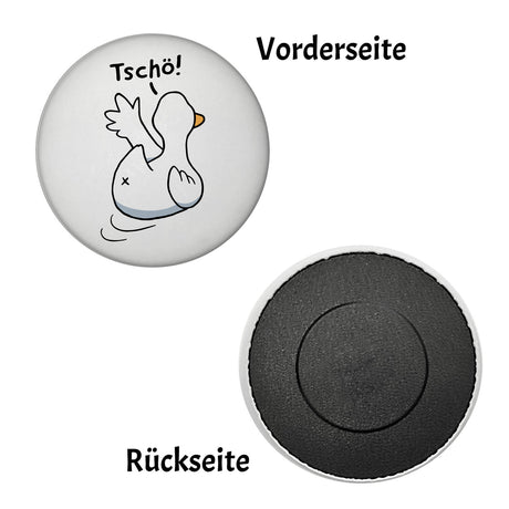 Ente winkt zum Abschied Magnet rund mit Spruch Tschö