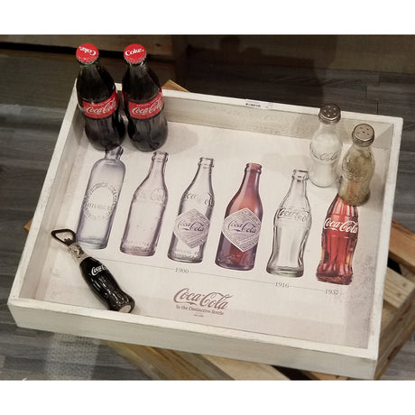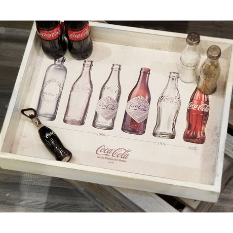 Coca-Cola Flaschengeschichte Serviertablett aus Holz