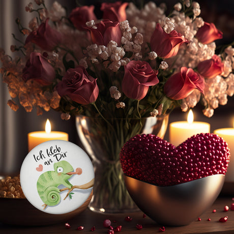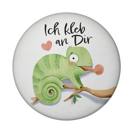 Ab €4,95Grundpreis /Nicht verfügbarAuf LagerChamäleon Magnet rund rund mit Spruch Ich kleb an dir