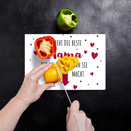 Beste Mama der Welt Schneidebrett aus Glas So sieht sie aus wenn sie Essen macht