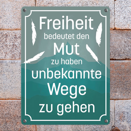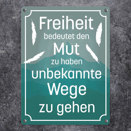 Metallschild mit schönem Spruch über die Freiheit für das Wohnzimmer