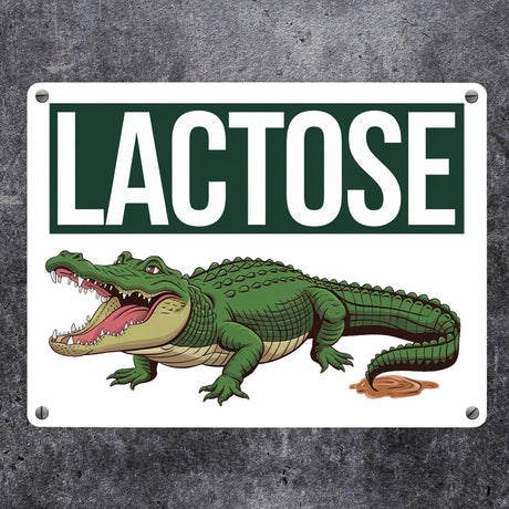 Ab €7,90Grundpreis /Nicht verfügbarAuf LagerKrokodil LACTOSE Metallschild in 15x20 cm für Menschen mit Humor