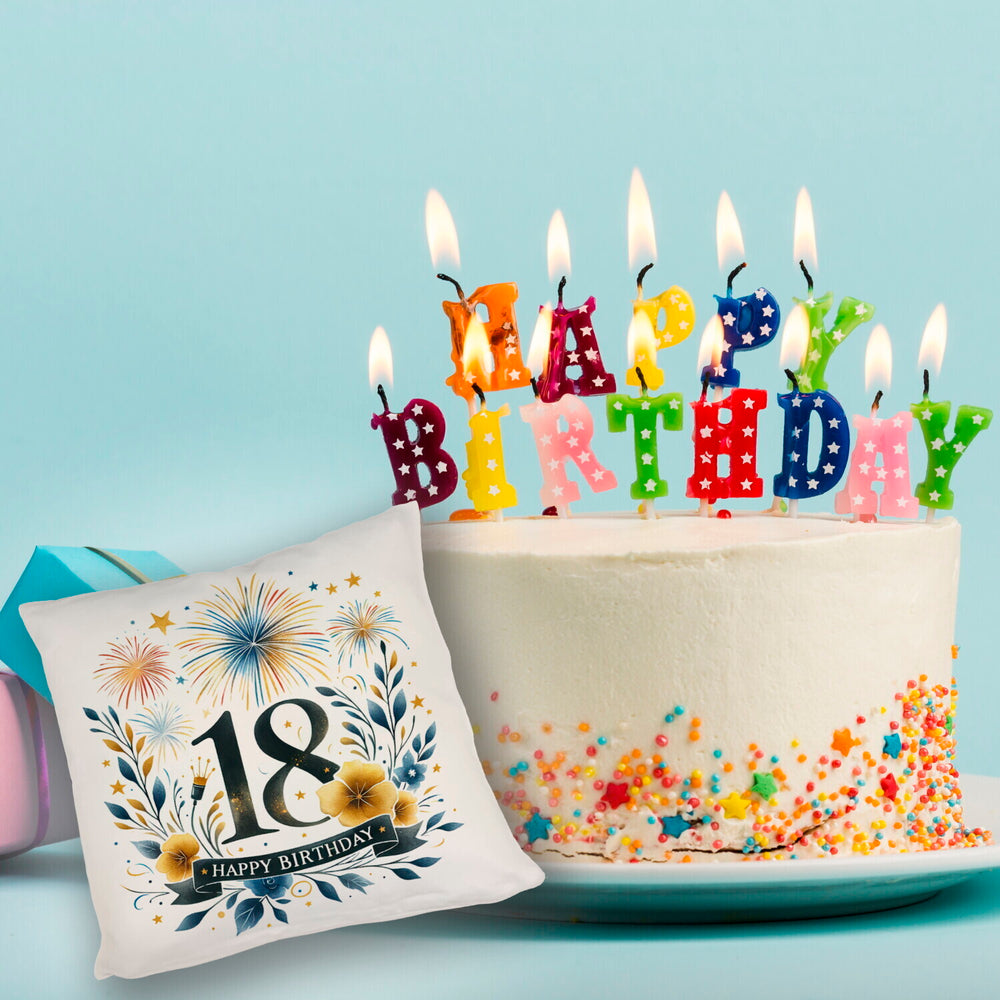• Perfekt für die Geburtstagsfeier deines Lebens! Hol dir das „Happy Birthday 18“-Kissen und lass die Feier beginnen. Ach, und vergiss nicht, einen Wunsch frei zu haben, wenn du dich darauf ausruhst!