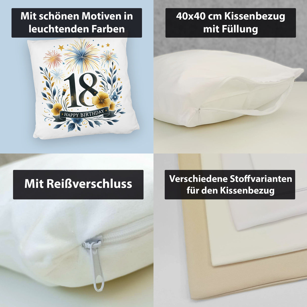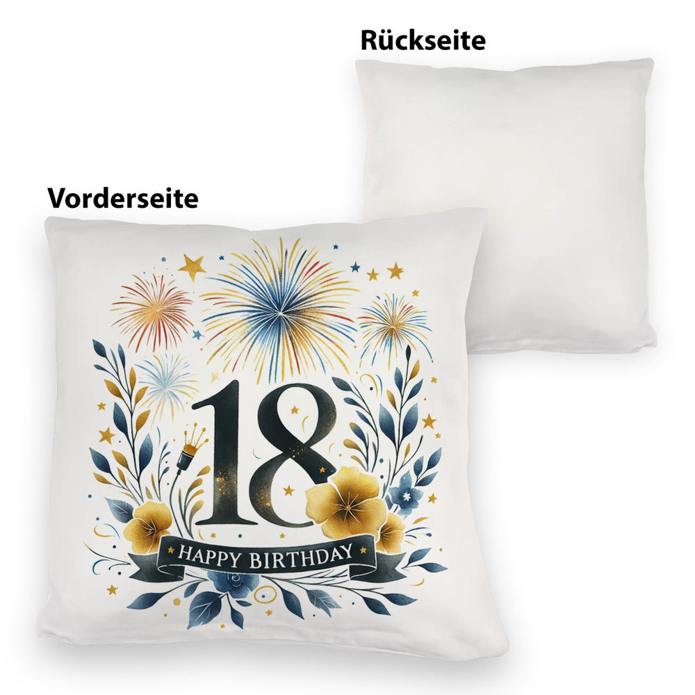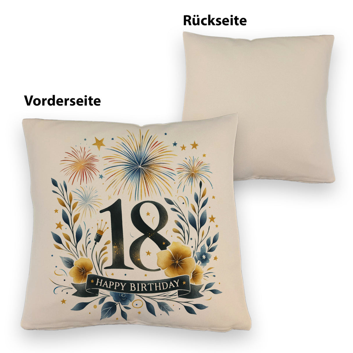 • 1x 18. Geburtstag Kissen mit Spruch Happy Birthday 18 in der gewählten Ausführung
