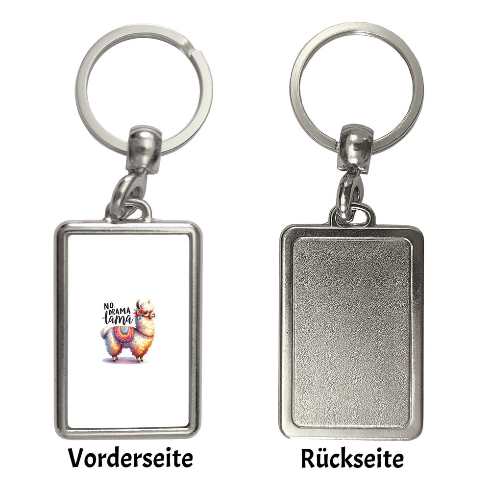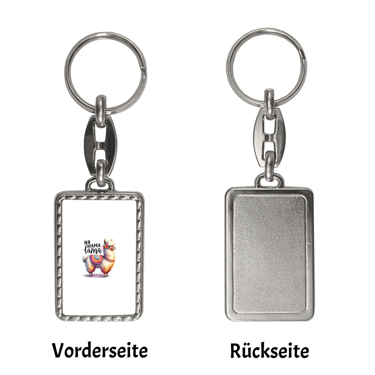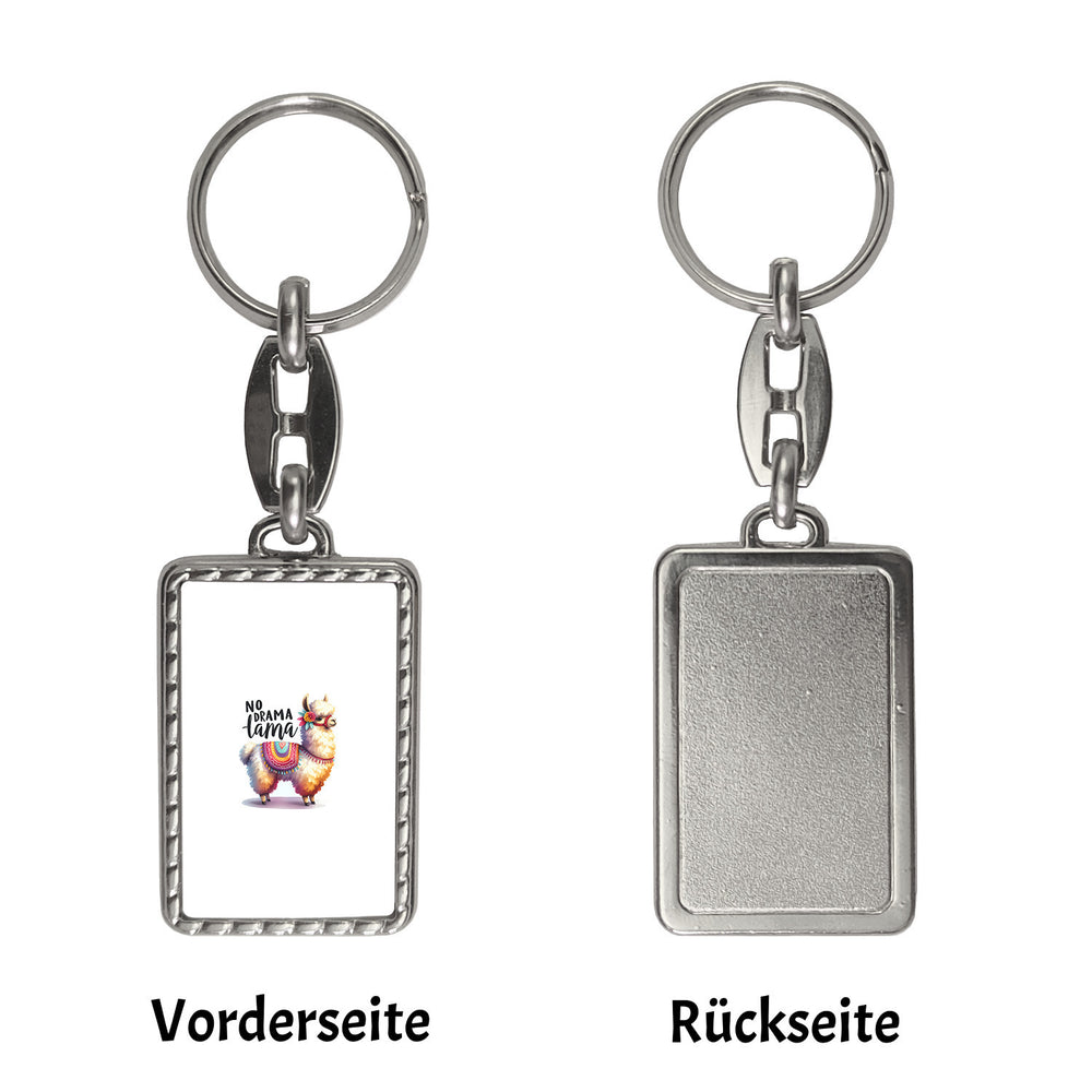 - 1x Alpaka mit bunter Satteldecke Schlüsselanhänger mit Spruch No Drama Lama in der gewählten Ausführung