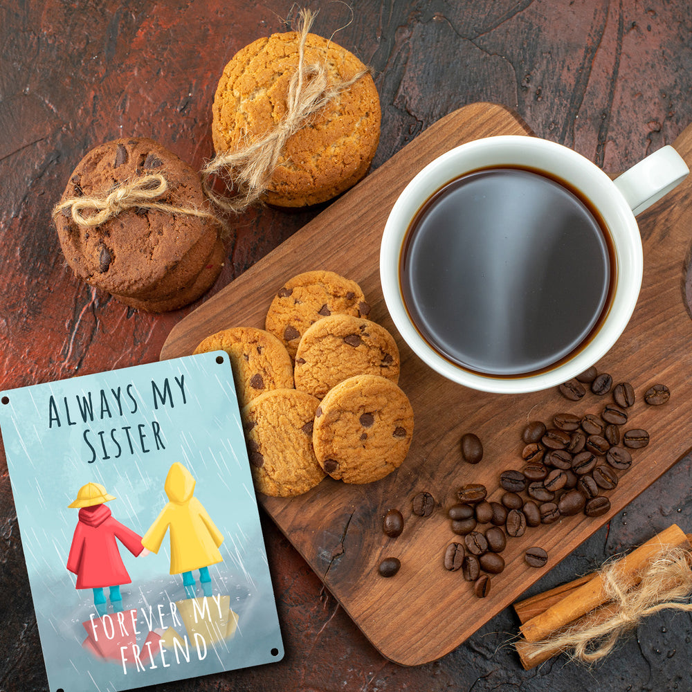 - 1x Always my sister forever my friend Metallschild in der gewählten Größe