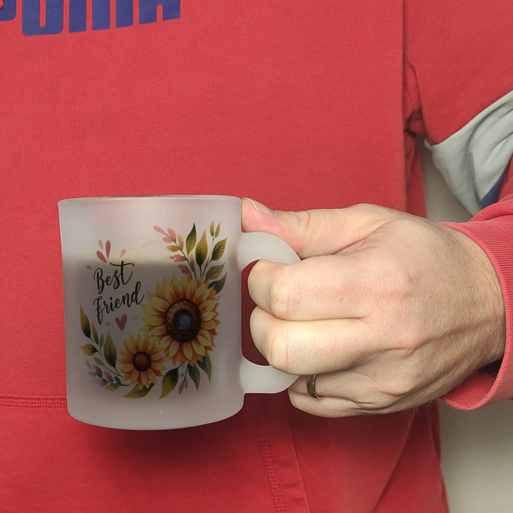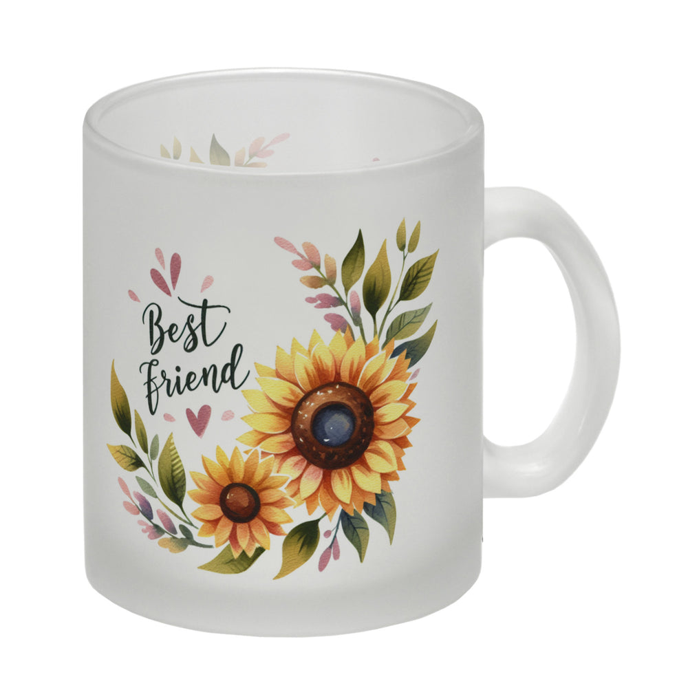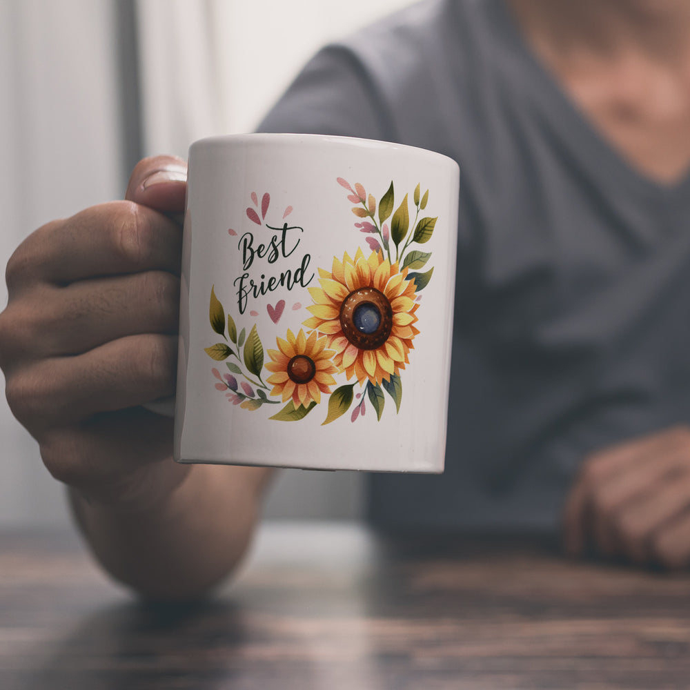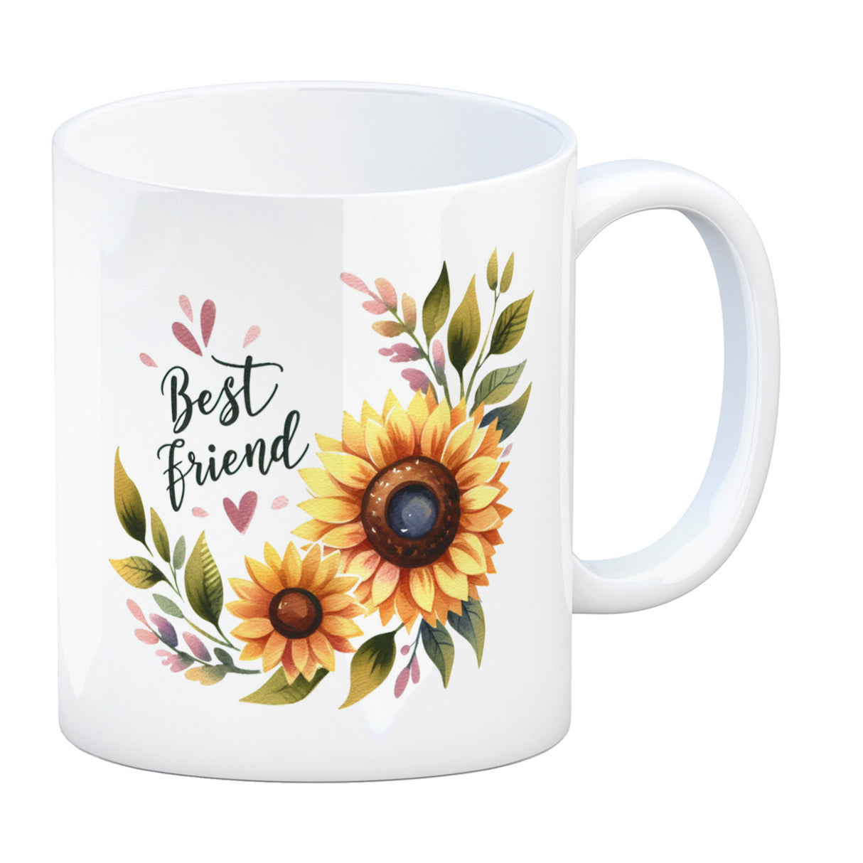- Starten Sie Ihren Tag mit einem Lächeln! Unser "Beste Freundin Sonnenblume Kaffeebecher" bringt Sonnenschein in Ihre Morgenroutine. Mit einer strahlenden Sonnenblume und dem stilvollen Schriftzug "Best friend" verkörpert dieser Becher pure Freude und tiefe Freundschaft.