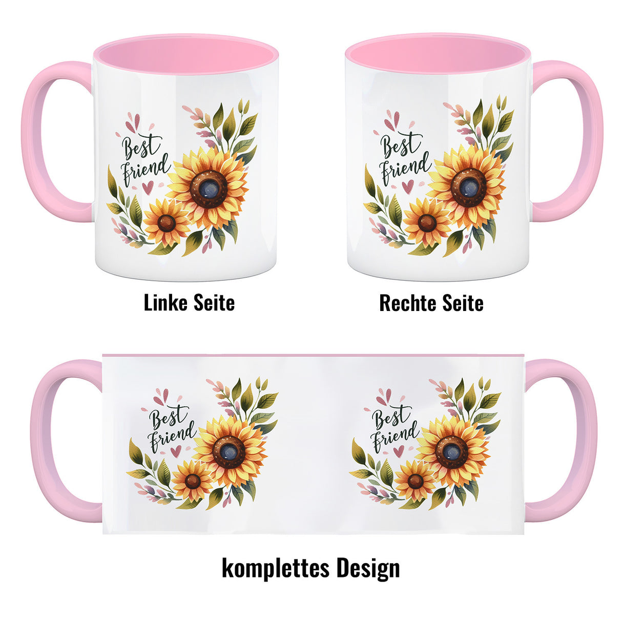 - 1x Beste Freundin Sonnenblume Kaffeebecher mit Spruch Best friend in der gewählten Ausführung
