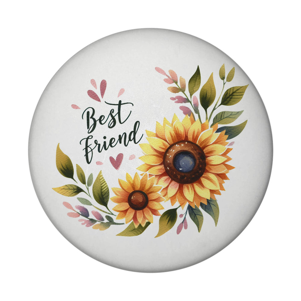 - Glänze im Freundschafts-Style! Unser runder Magnet mit der strahlenden Sonnenblume und dem Schriftzug "Best friend" bringt nicht nur Farbe, sondern auch Herzen zum Leuchten. Ideal für alle, die ihrer besten Freundin zeigen wollen, wie besonders sie ist.