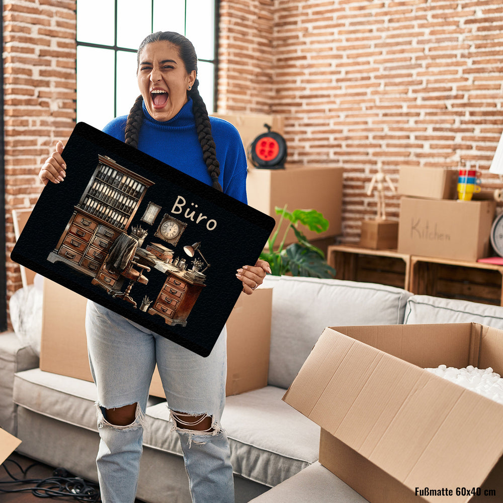 - Träumen Sie von Ordnung? Unsere Büro Fußmatte mit Spruch sagt alles: „Büro.“ Perfekt für alle, die einen alten Schreibtisch und überquellende Schränke voller Ordner lieben!