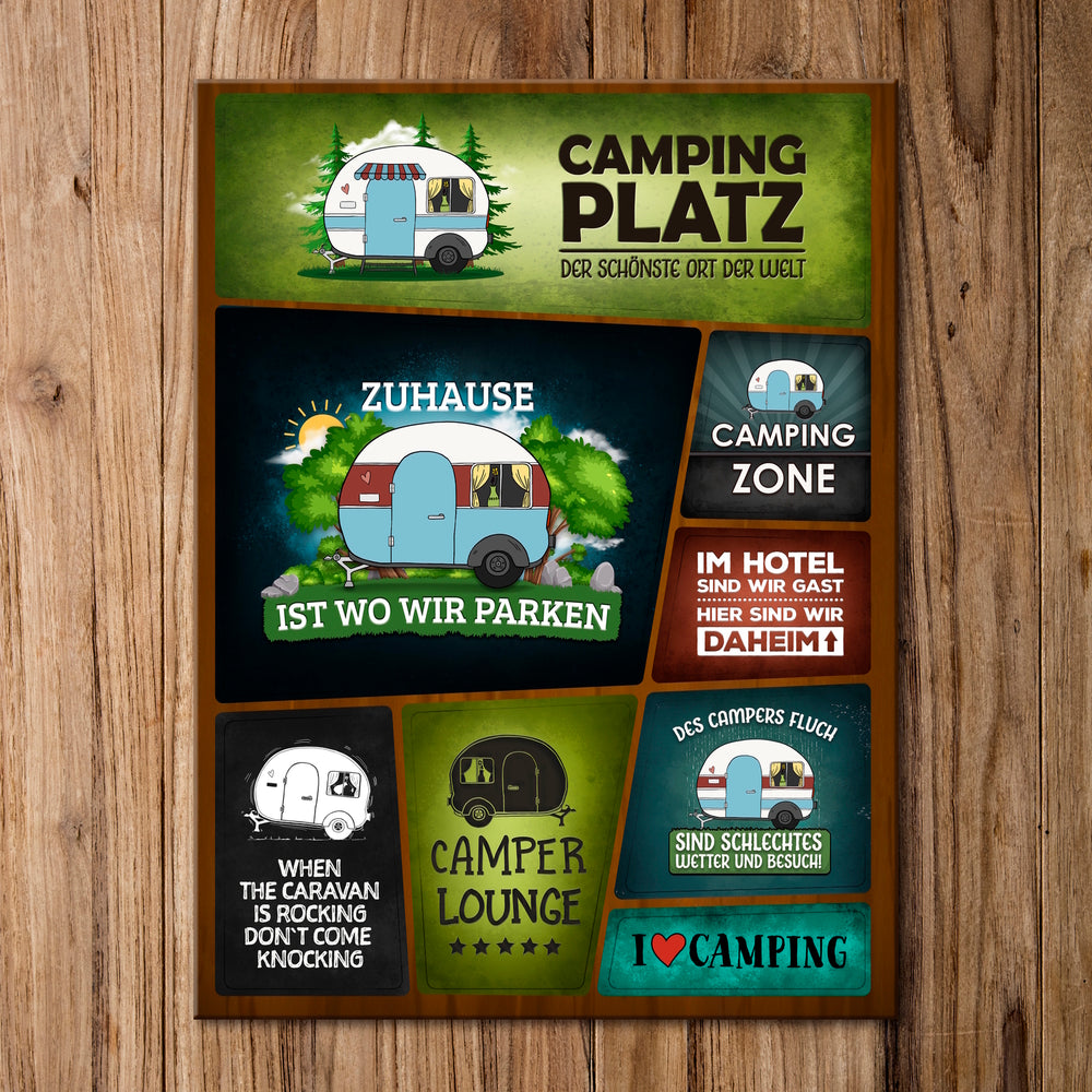 Camping Zone Metallschild mit Wohnwagen Motiv Wohnwagen Wohnmobil Urlaub