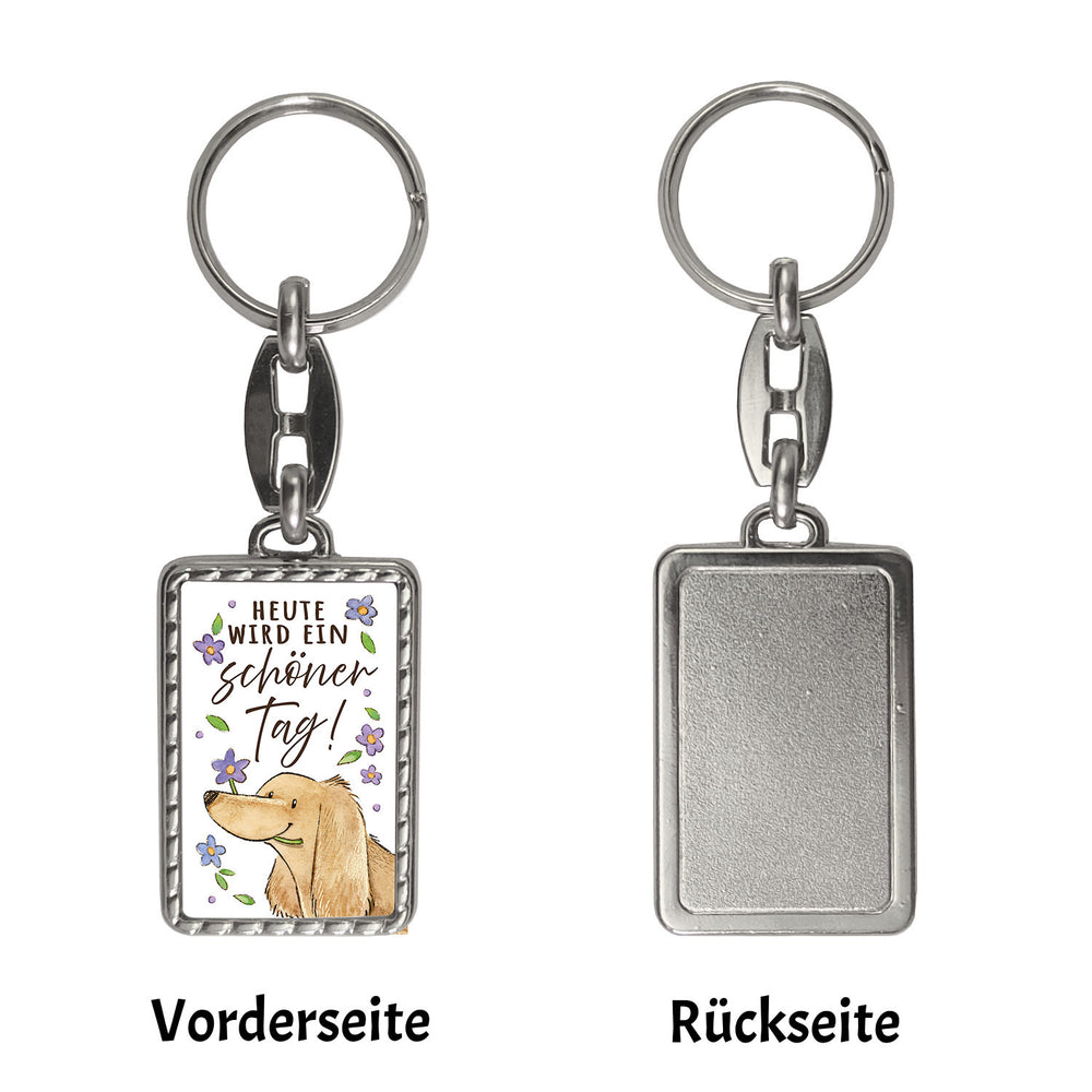 - 1x Dackel mit Blume Schlüsselanhänger mit Spruch Heute wird ein schöner Tag in der gewählten Ausführung