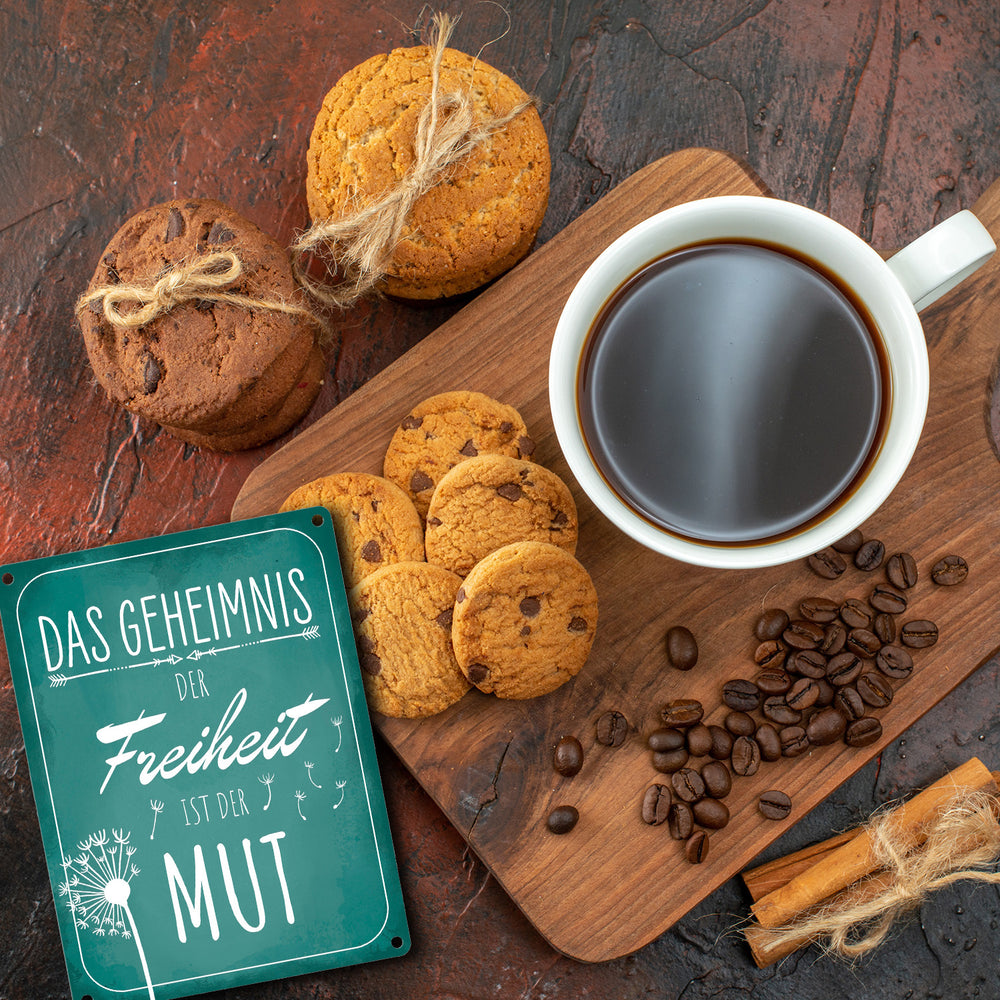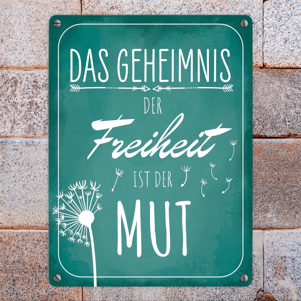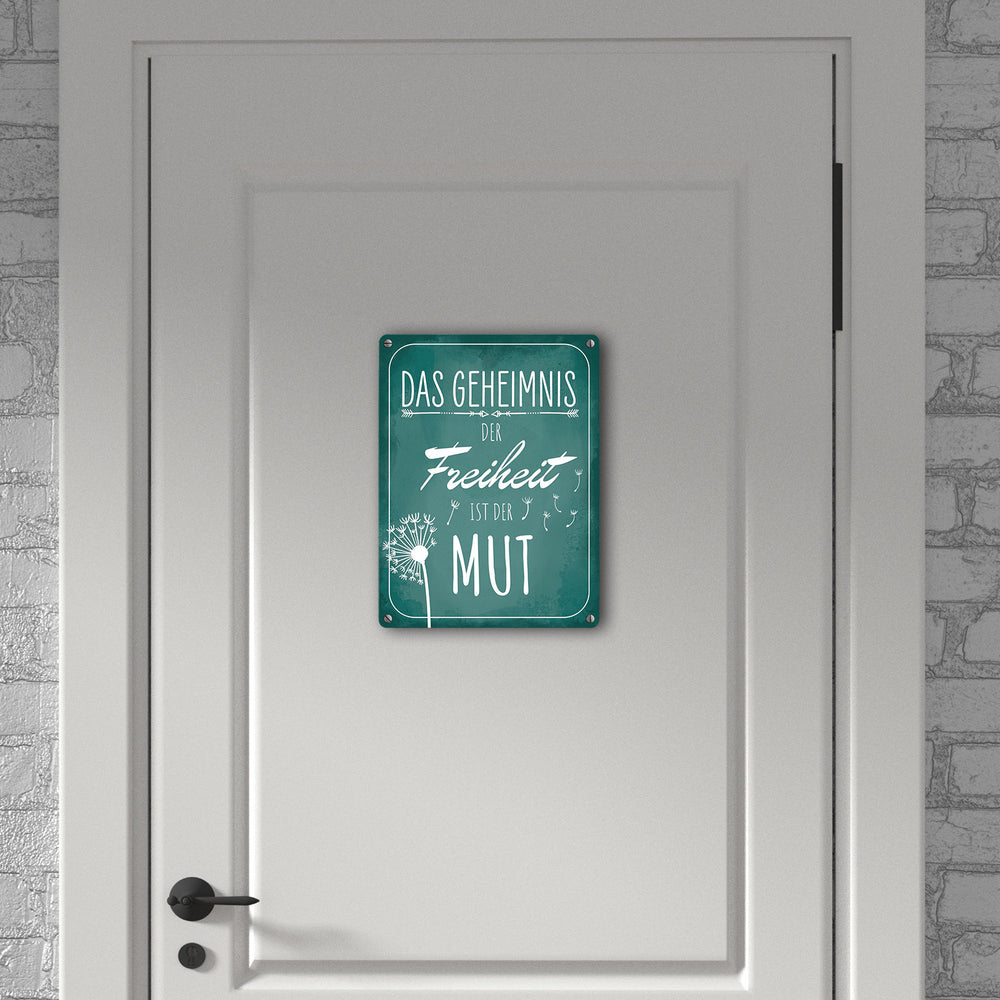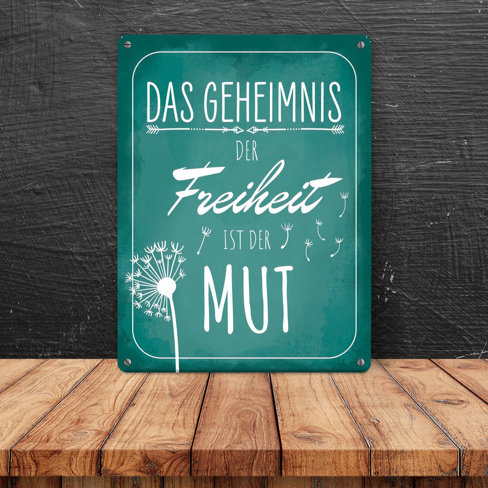 - 1x Das Geheimnis der Freiheit ist der Mut Metallschild in der gewählten Größe