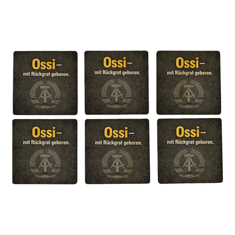 DDR-Stolz 6er Set Untersetzer aus Holz - Ossi durch und durch