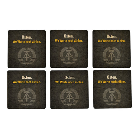 DDR-Stolz 6er Set Untersetzer aus Holz - Wo Werte noch zählen