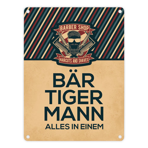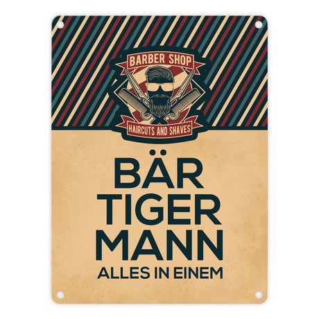 Bär-Tiger-Mann alles in einem Metallschild mit Barber-Shop Motiv