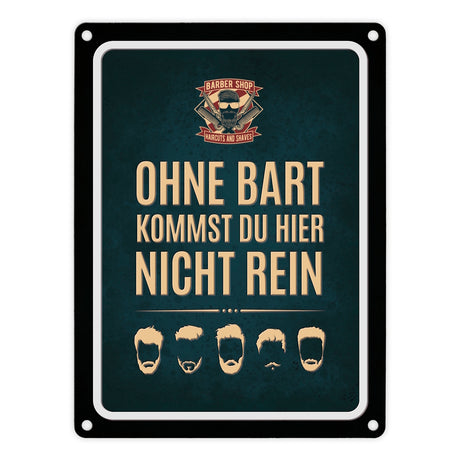 Ohne Bart kommst du hier nicht rein Metallschild mit Barber-Shop Motiv