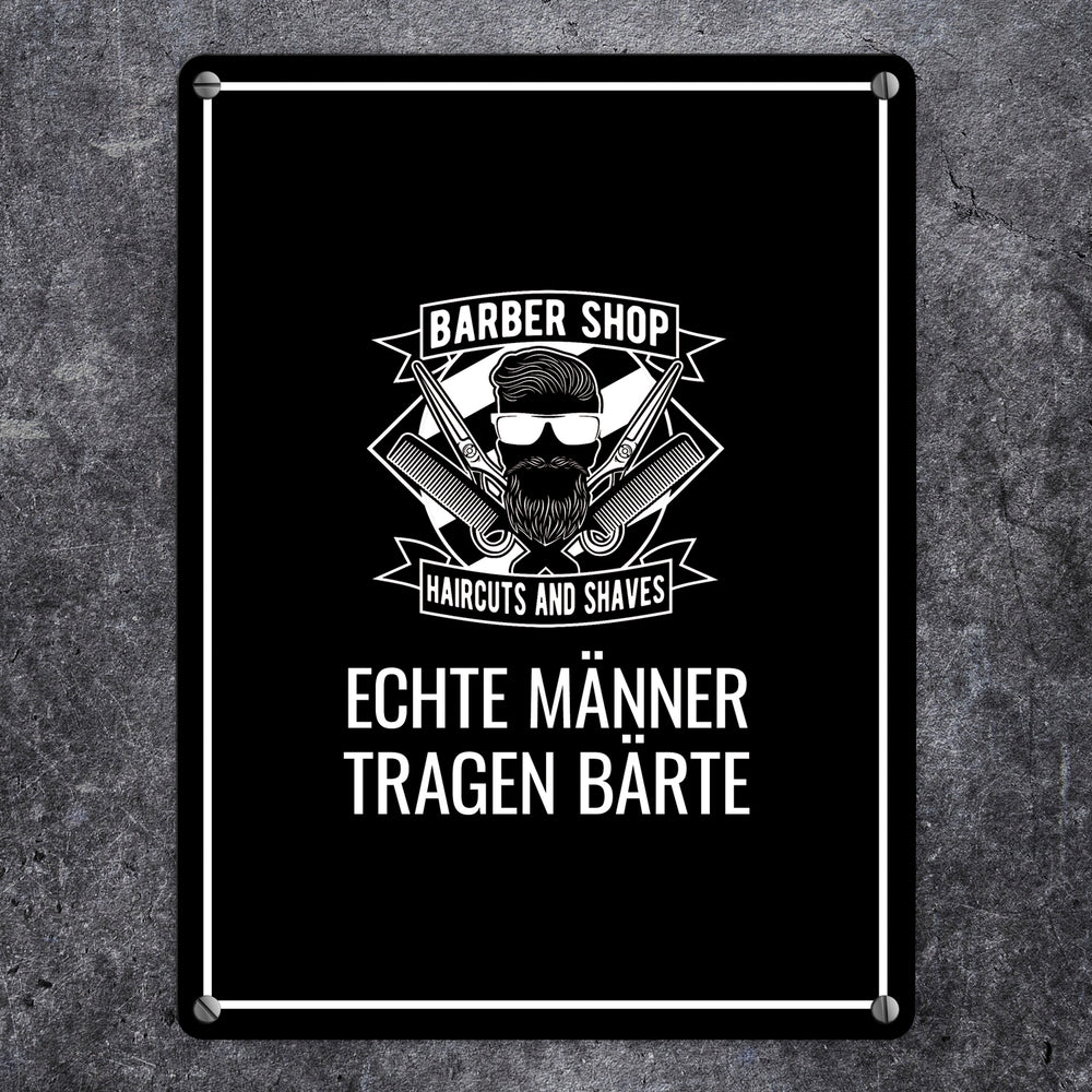 - 1x Echte Männer tragen Bärte Metallschild mit Barber-Shop Motiv in der gewählten Größe