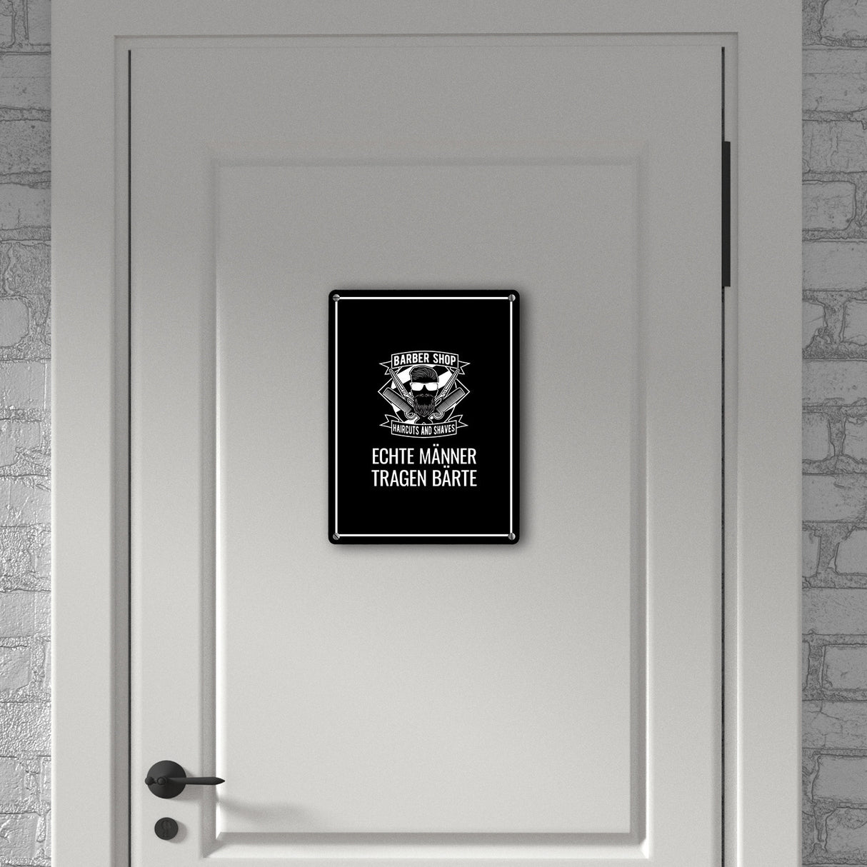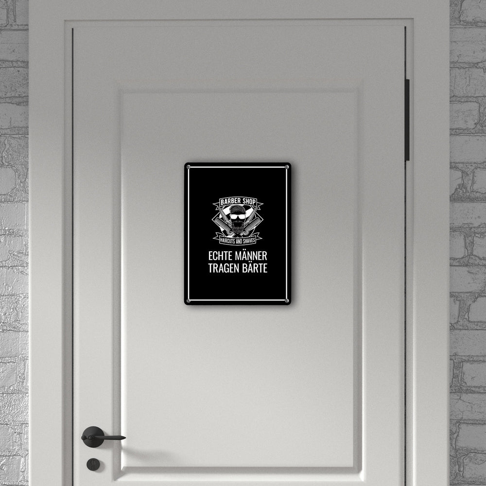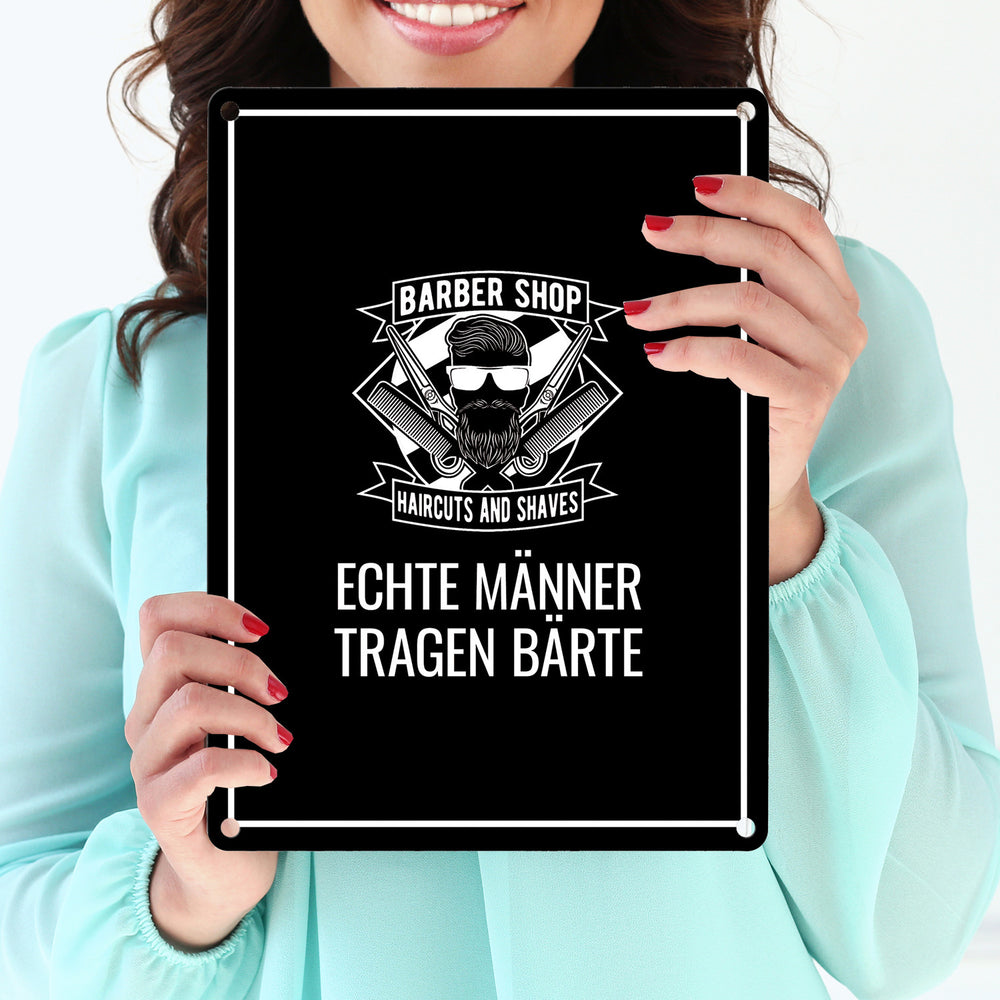Echte Männer tragen Bärte Metallschild mit Barber-Shop Motiv