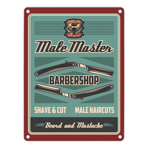 - Ein cooles Metallschild für deinen Barber-Shop.