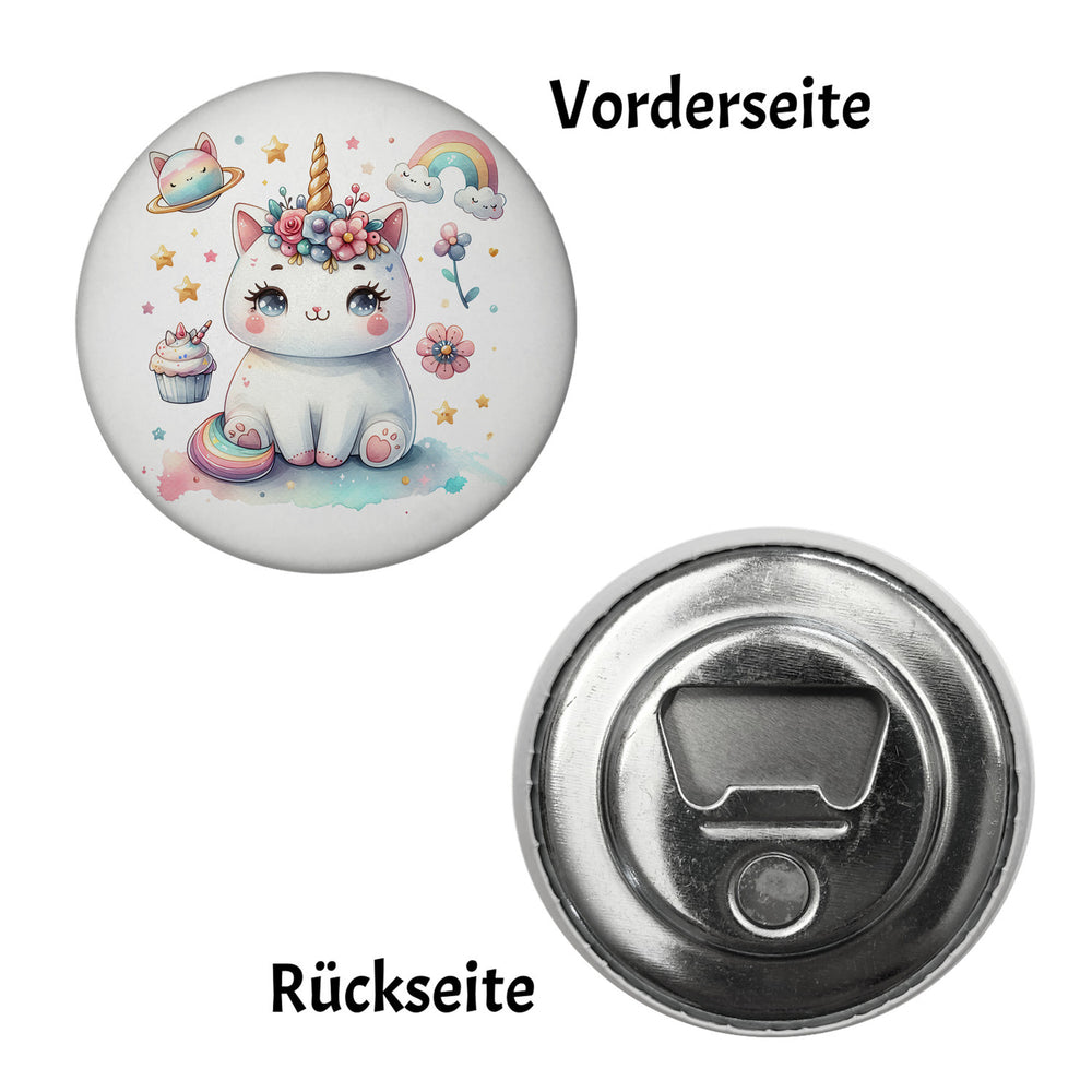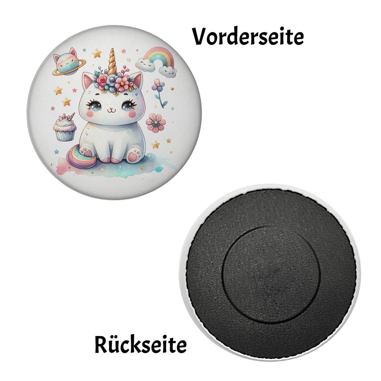 - 1x Einhorn-Katze Aquarell Magnet rund in der gewählten Ausführung