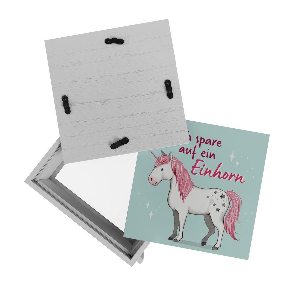 - 1x Einhorn Spardose in mintgrün mit Spruch Ich spare auf ein Einhorn in der gewählten Ausführung