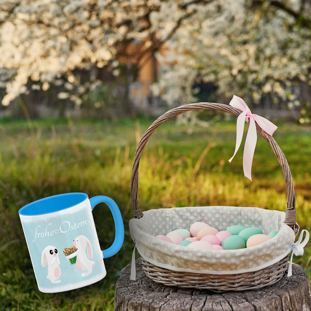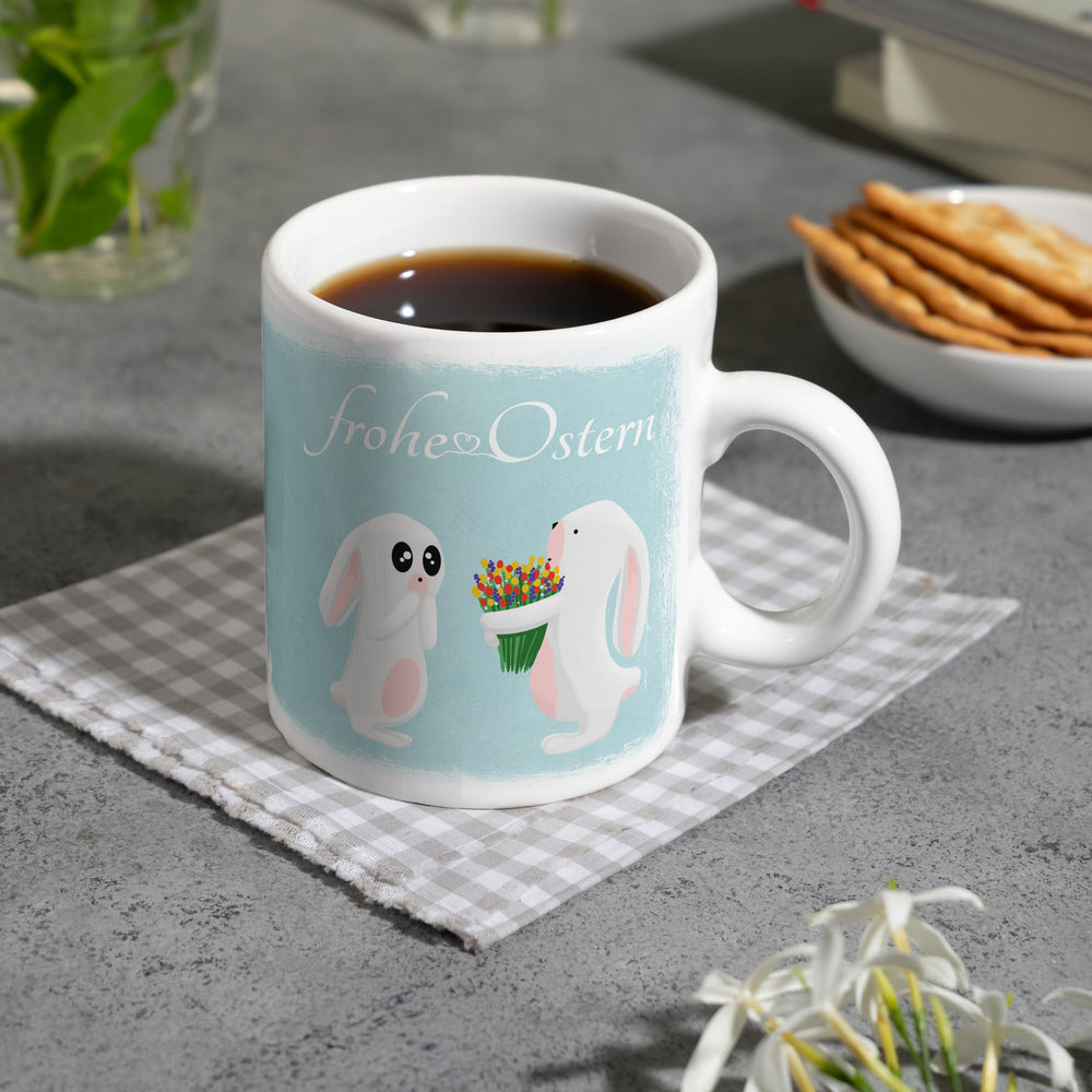Frohe Ostern Kaffeebecher mit Osterhase und Osterei