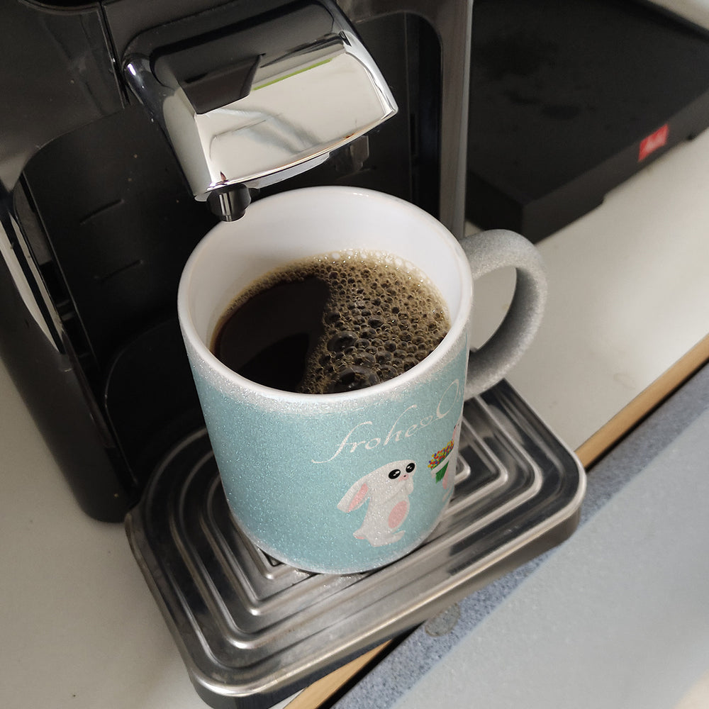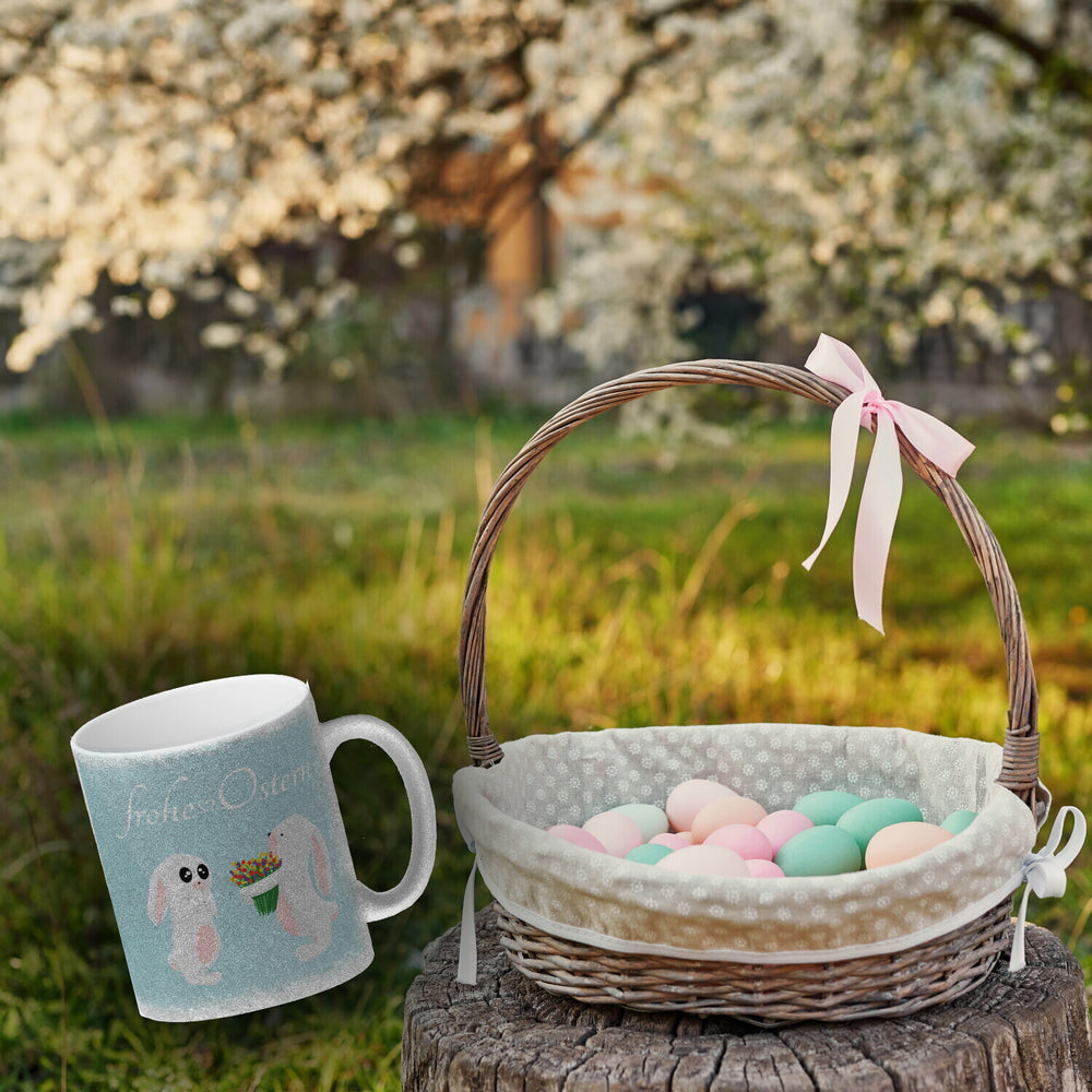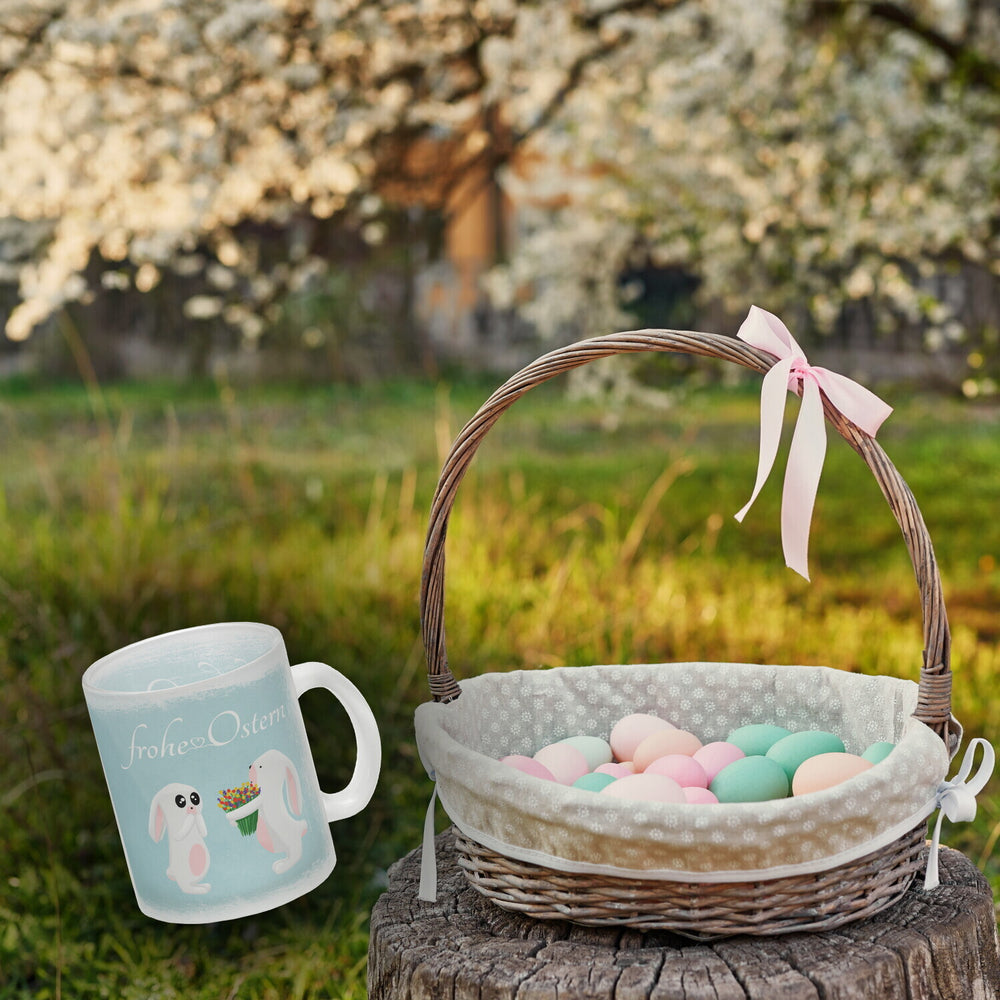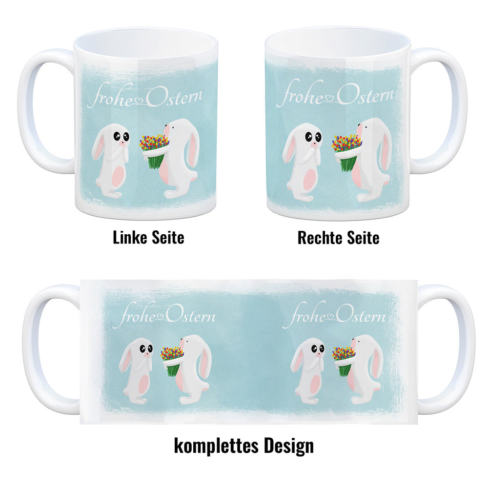 • 1x Frohe Ostern Kaffeebecher mit süßen Häschen in der gewählten Ausführung