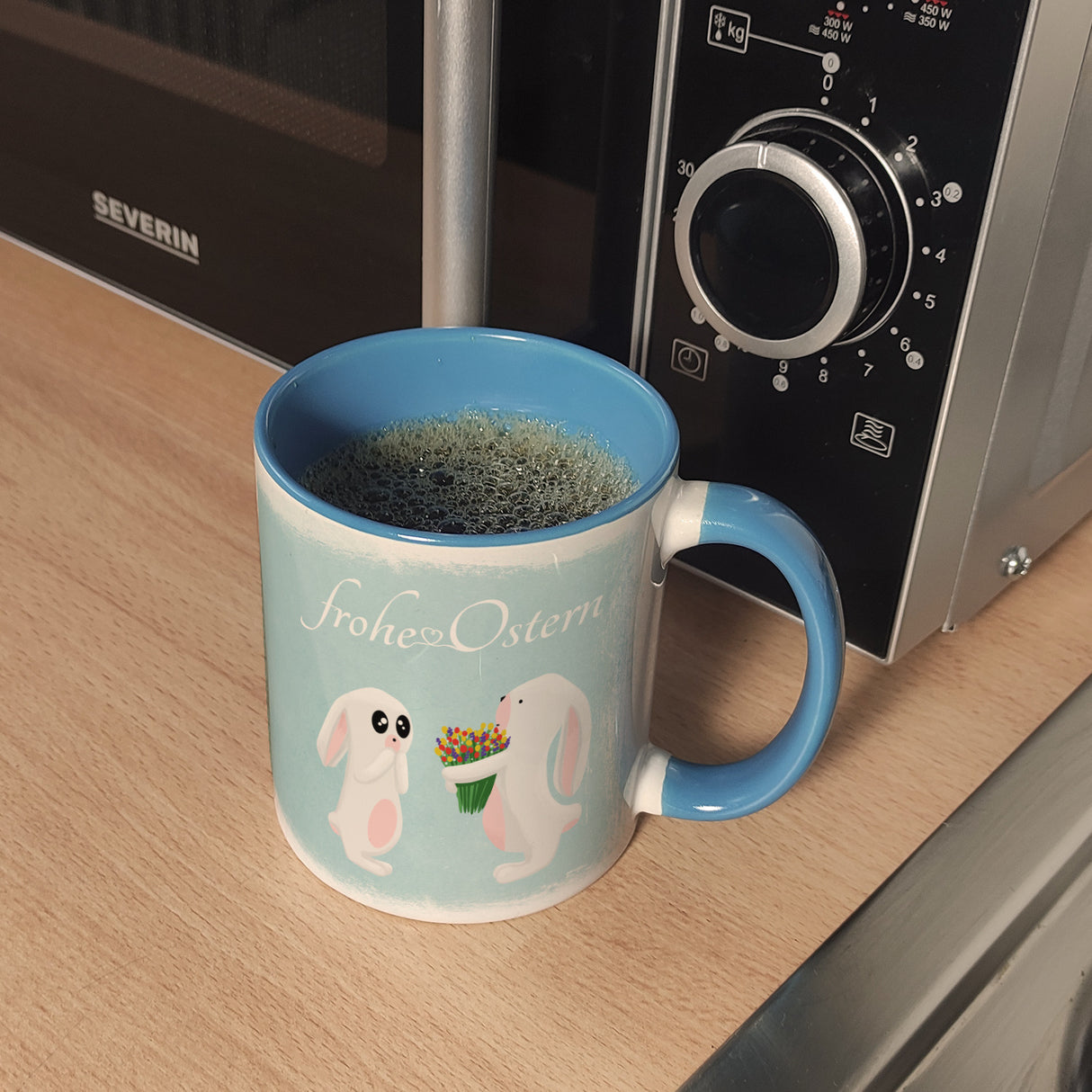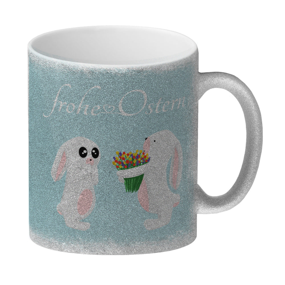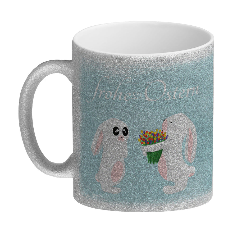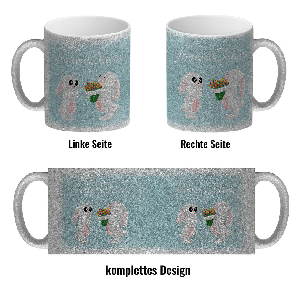• 1x Frohe Ostern Kaffeebecher mit süßen Häschen in der gewählten Ausführung