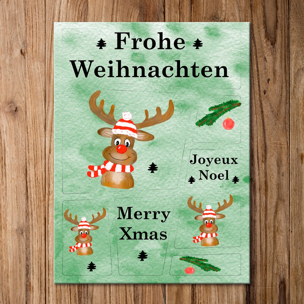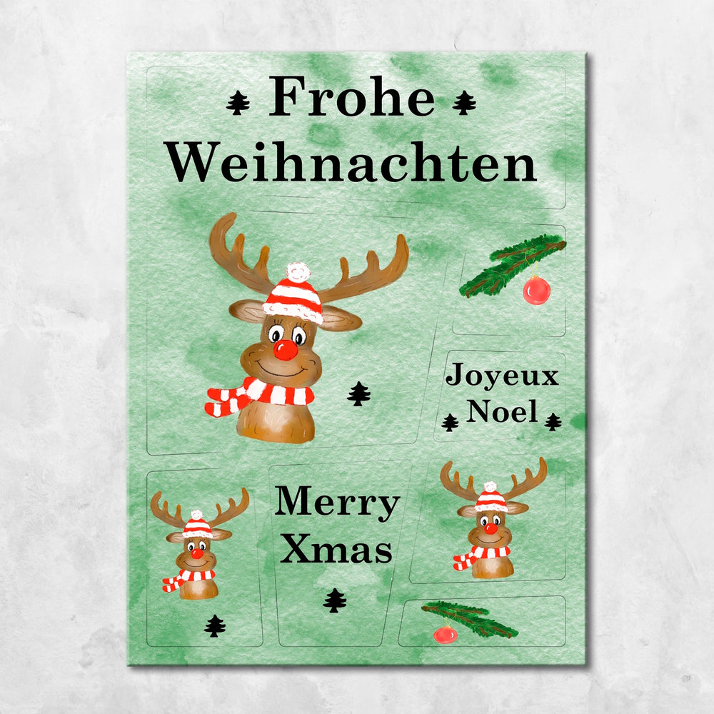Frohe Weihnachten Rentier Kühlschrankmagnete im 8er Set