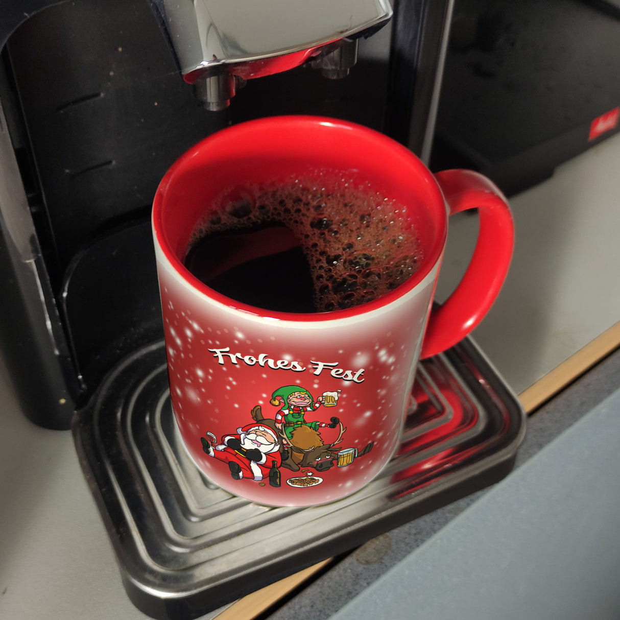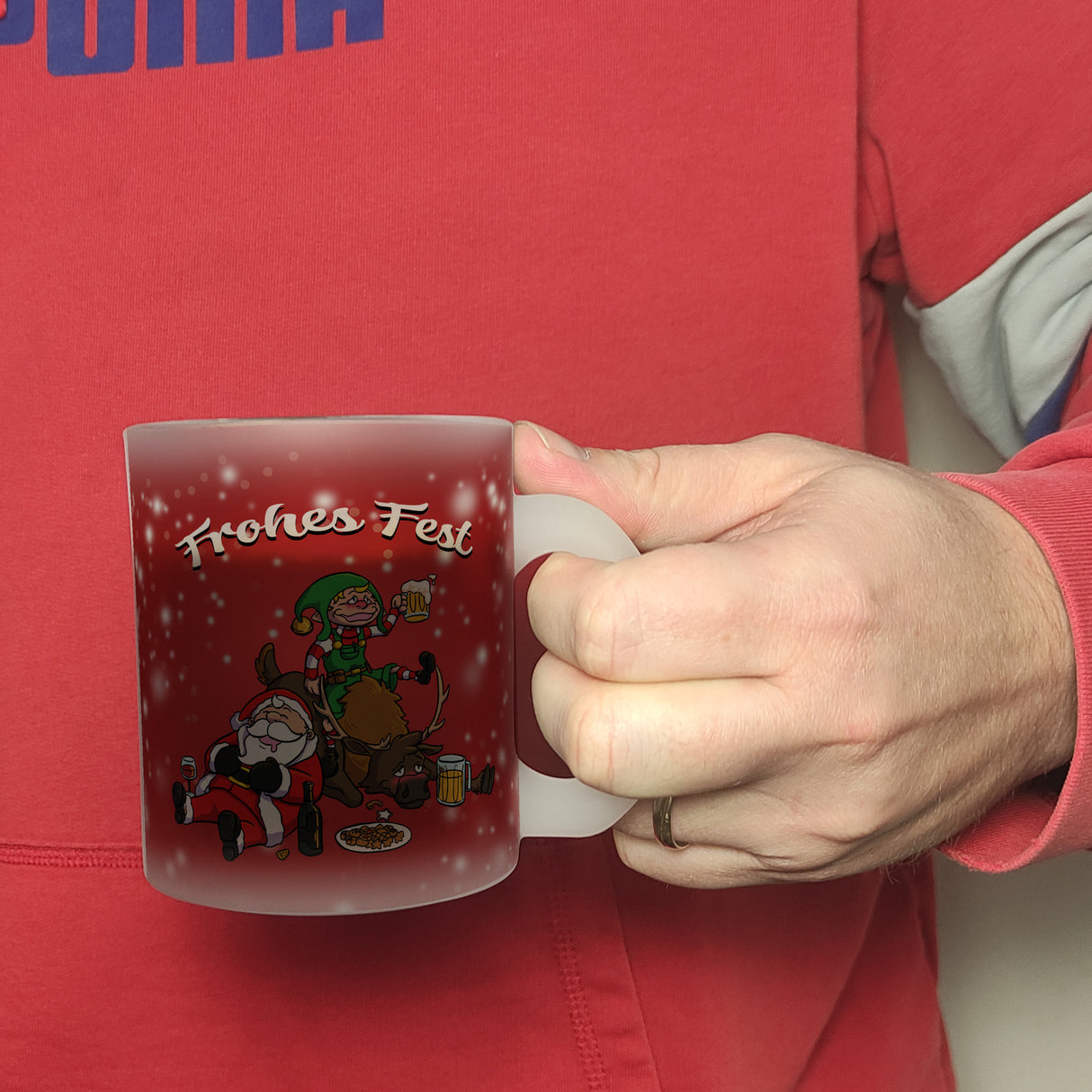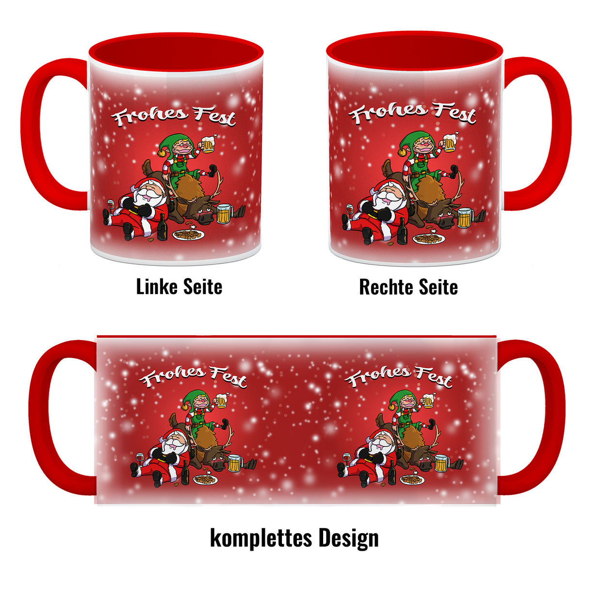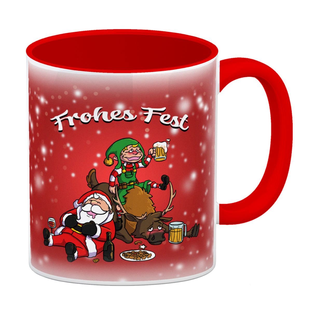 - 1x Frohes Fest mit lustigem Weihnachtsmotiv Kaffeebecher in der gewählten Ausführung