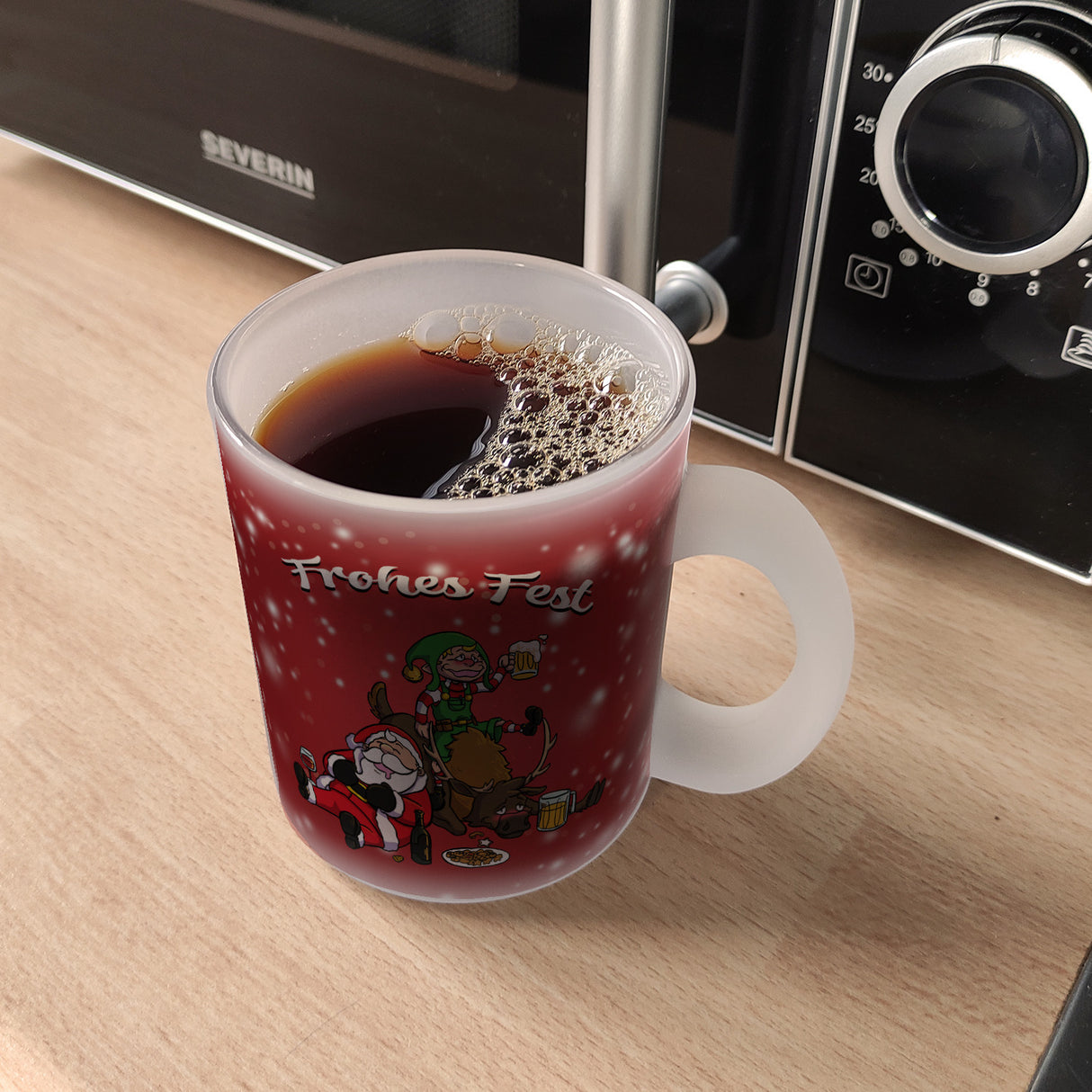 - Weihnachten steht vor der Tür und ihr stimmt euch auf die Festtage ein mit einer Tasse Glühwein aus dieser tollen Glühweintasse. Dieser versüßt den Abend mit einem witzigen Weihnachtsmotiv und wünscht ein frohes Fest. So schön können die Feiertage doch gern beginnen.
